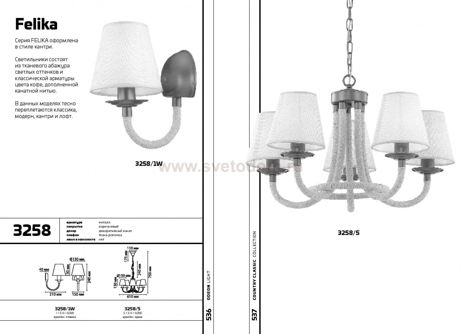Храктерная особенность артикула 3258/1W: Бра 3258/1W серии FELIKA оформлен в классическом стиле. Светильник состоит тканевого абажура светлых оттенков и классической арматуры цвета кофе, дополненной канатной нитью. В данной модели тесно переплетаются классика, модерн, кантри и лофт. Цоколь E14. Мощность 1*60W. Нет ламп в комплекте.