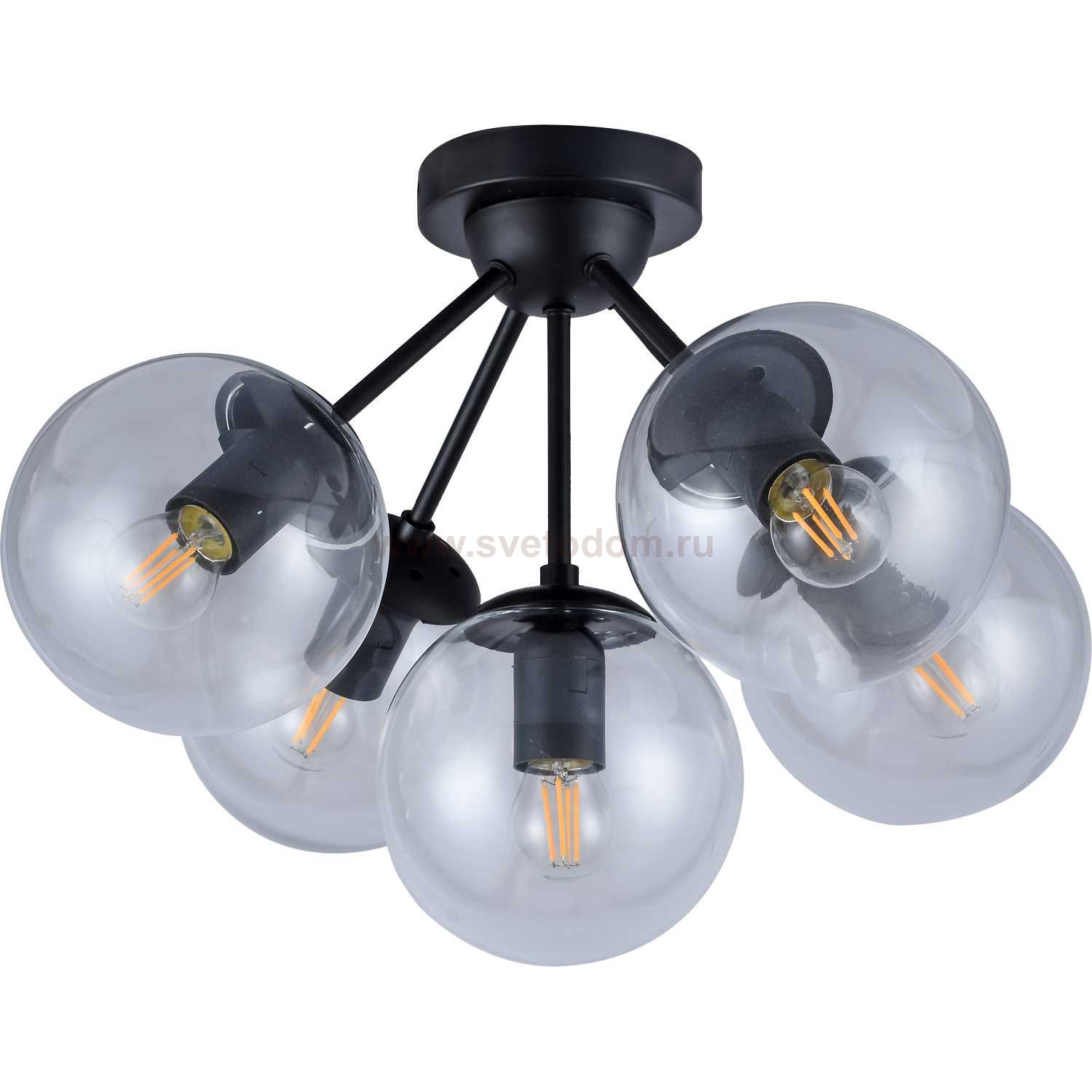 Люстра потолочная 3007/00/05C Stilfort, серия Tindari, цвет арматуры- черный, цвет плафонов - прозрачный, лампы - 5*E27*40W, материал арматуры - металл, материал плафонов - стекло |