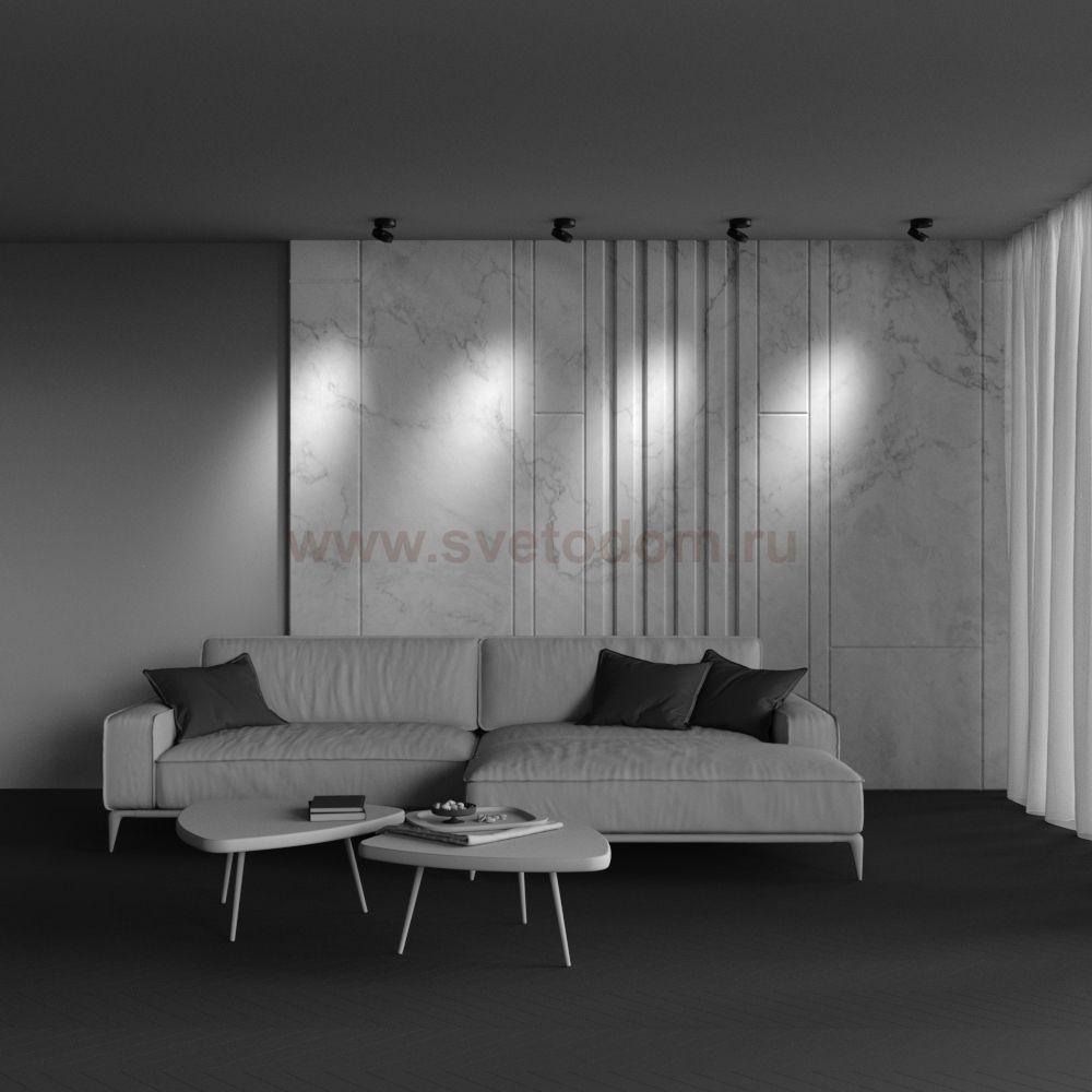 Накладной светодиодный светильник с углом рассеивания света 38°. Направление светового потока регулируется в двух плоскостях: на 360° в горизонтальной и 90° в вертикальной. Светового потока светильника достаточно для освещения пространства отраженным светом.