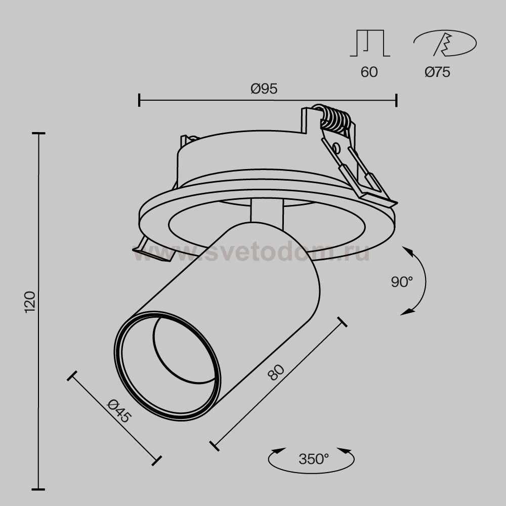 Данный размер указывает какое отверстие необходимо сделать для правильного монтажа. Зачастую светильники выбирают после ремонта и сделанных монтажных отверстий, тогда подбор осуществляется строго в размер +/- 2-5мм.