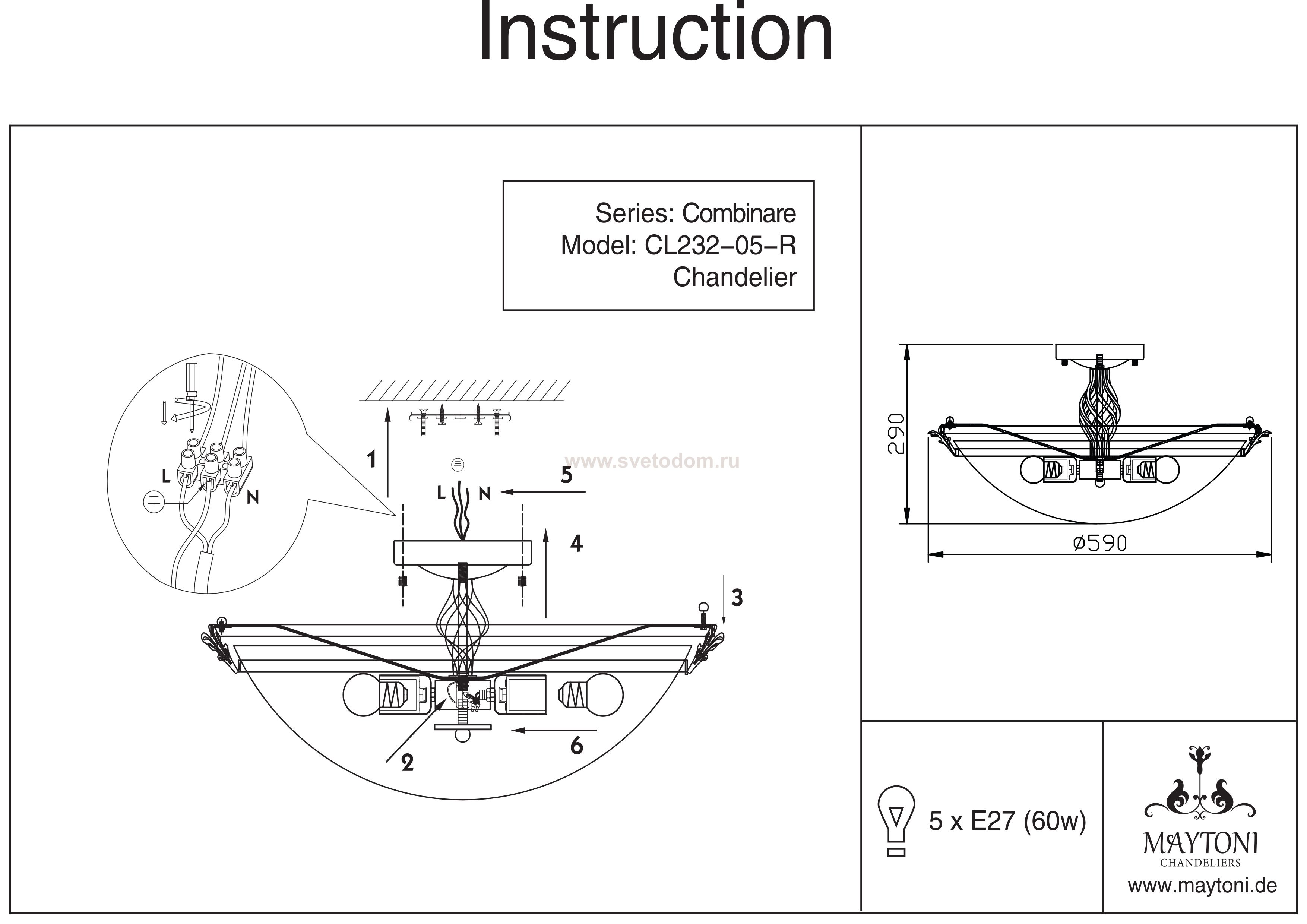 Максимальная потребляемая мощность лампы, которую можно использовать в люстре.