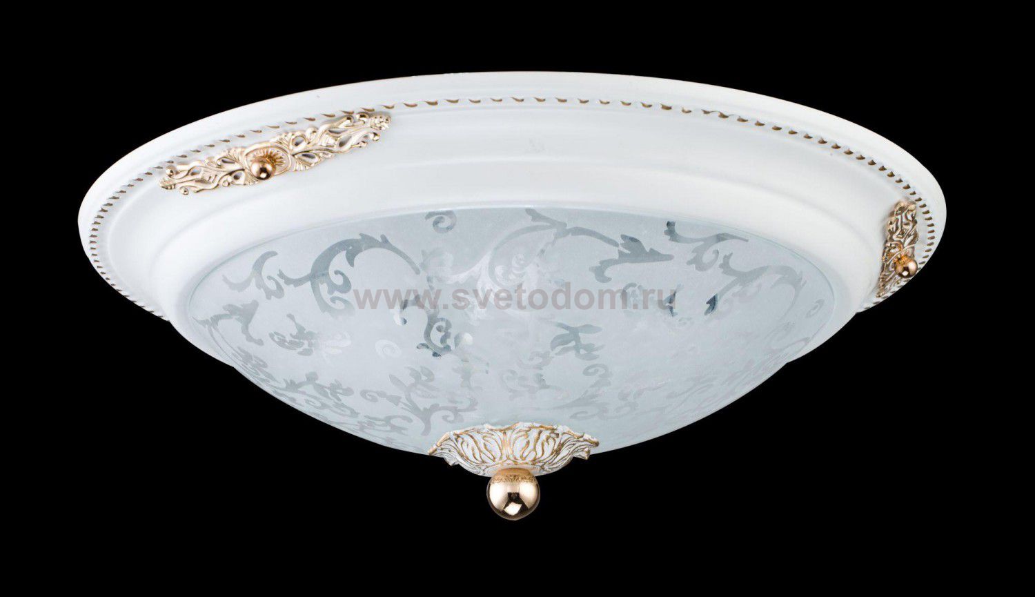 Арматура – металл, цвет – белый с золотистой патиной. Плафон – матовое стекло. Декор плафона – пескоструйный рисунок.