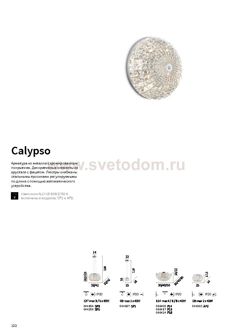 Компания «Светодом» предлагает широкий ассортимент люстр от известных производителей. Представленные в нашем каталоге товары выполнены из современных материалов и обладают отличным качеством. Благодаря широкому ассортименту Вы сможете найти у нас люстру под любой интерьер. Мы предлагаем как классические варианты, так и современные модели, отличающиеся лаконичностью и простотой форм. Стильная люстра Ideal lux CALYPSO PL6 станет украшением любого дома. Эта модель от известного производителя не оставит равнодушным ценителей красивых и оригинальных предметов интерьера. Люстра Ideal lux CALYPSO PL6 обеспечит равномерное распределение света по всей комнате. При выборе обратите внимание на характеристики, позволяющие приобрести наиболее подходящую модель. Купить понравившуюся люстру по доступной цене Вы можете в интернет-магазине «Светодом».
