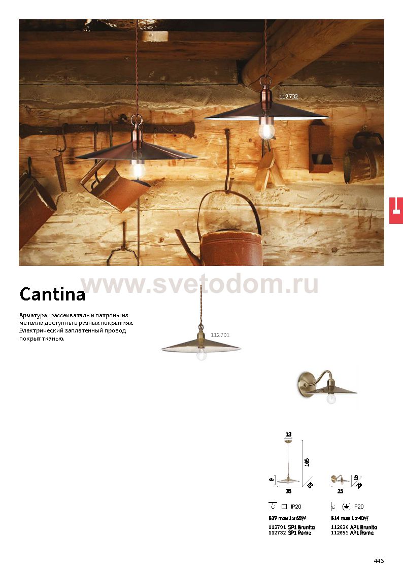 Арматура, рассеиватель и патрон из металла доступны в разных покрытиях. Электрический шнур переплетён и покрыт полотном.