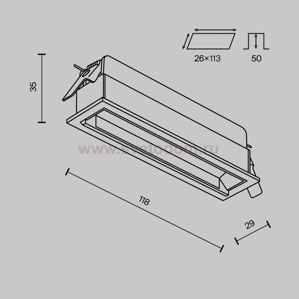 Материал корпуса - металл; цвет - черный. Равномерная заливка цветом стен. LED-источник света. Белый матовый рассеиватель. Переключатель цветовой температуры(2.7-3-4К). Высокий коэффициент цветопередачи >90. Совместимость с источниками питания Dali и Triac.