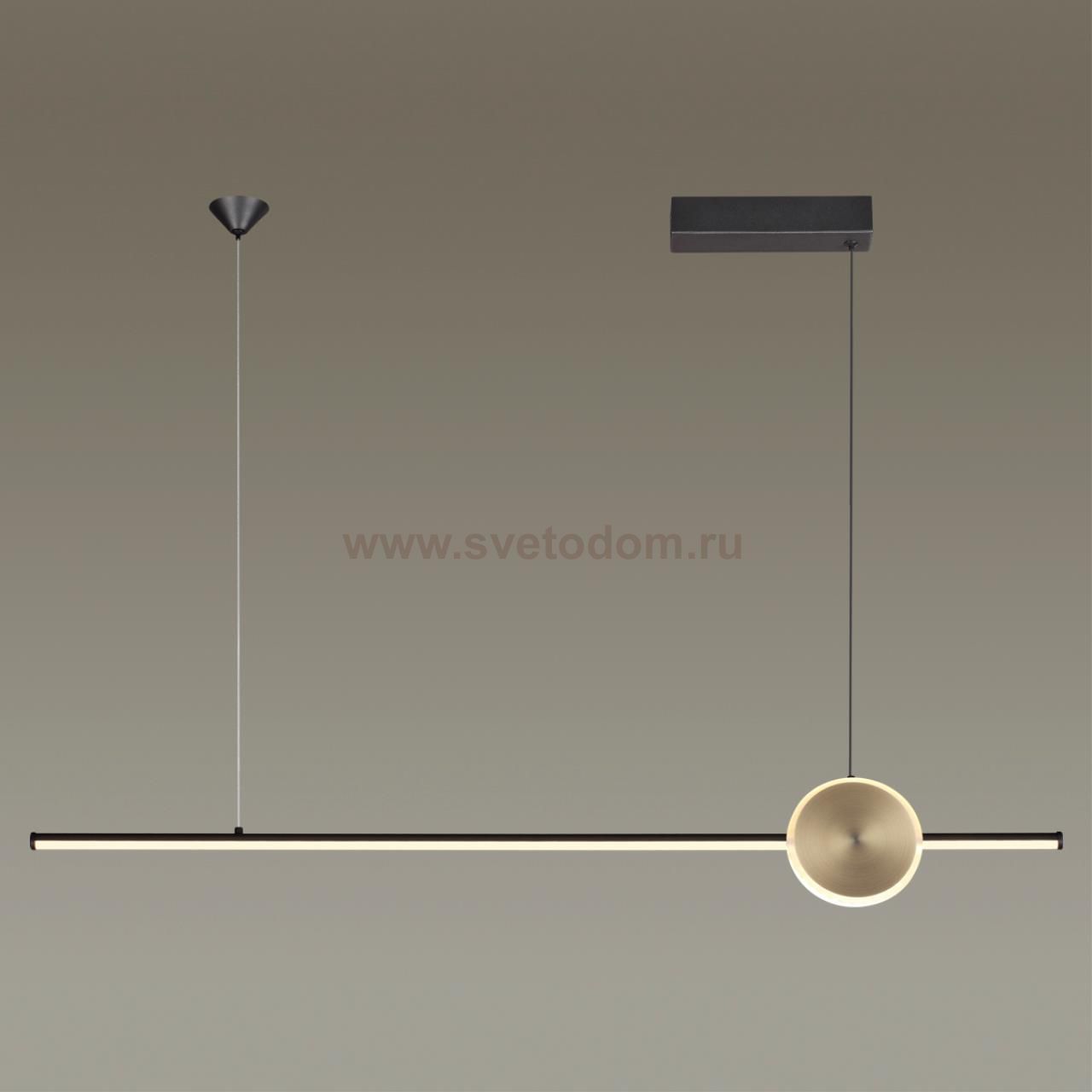Подвесной светильник с якро выраженной четкой геометрией - стильное решение для современного интерьера с чертами ретро-футуризма. Светильник образует эффектную световую линию за счет нижней полоски света и LED по окружностям, расположенным по обеим сторонам основания.
