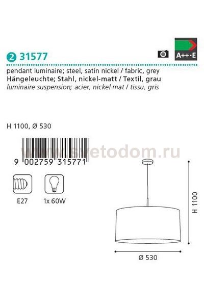 Компания «Светодом» предлагает широкий ассортимент люстр от известных производителей. Представленные в нашем каталоге товары выполнены из современных материалов и обладают отличным качеством. Благодаря широкому ассортименту Вы сможете найти у нас люстру под любой интерьер. Мы предлагаем как классические варианты, так и современные модели, отличающиеся лаконичностью и простотой форм. Стильная люстра Eglo 31577 станет украшением любого дома. Эта модель от известного производителя не оставит равнодушным ценителей красивых и оригинальных предметов интерьера. Люстра Eglo 31577 обеспечит равномерное распределение света по всей комнате. При выборе обратите внимание на характеристики, позволяющие приобрести наиболее подходящую модель. Купить понравившуюся люстру по доступной цене Вы можете в интернет-магазине «Светодом».
