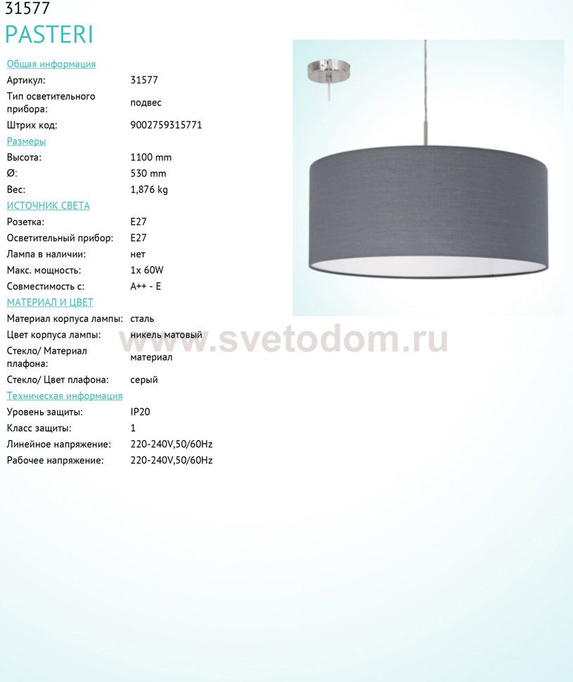 S-8163 Отзывы Текстильный светильник Eglo 31577 PASTERIПока нет отзывов об этом товаре, напишите и он обязательно появится после модерации! Оставить свой отзывПохожие товары Другие товары магазина Фото