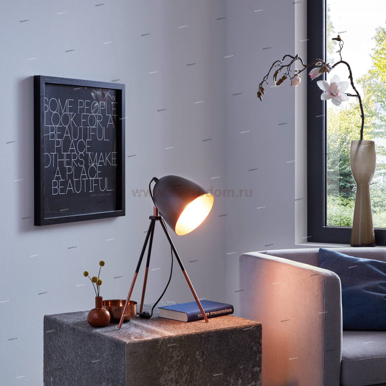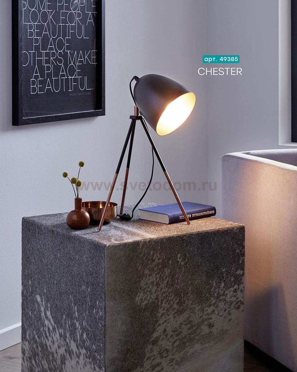 Настольная лампа CHESTER на треноге, 1x60W (E27), H440, сталь, черный, медный применяется преимущественно в домашнем освещении с использованием стандартных выключателей и переключателей для сетей 220V.
