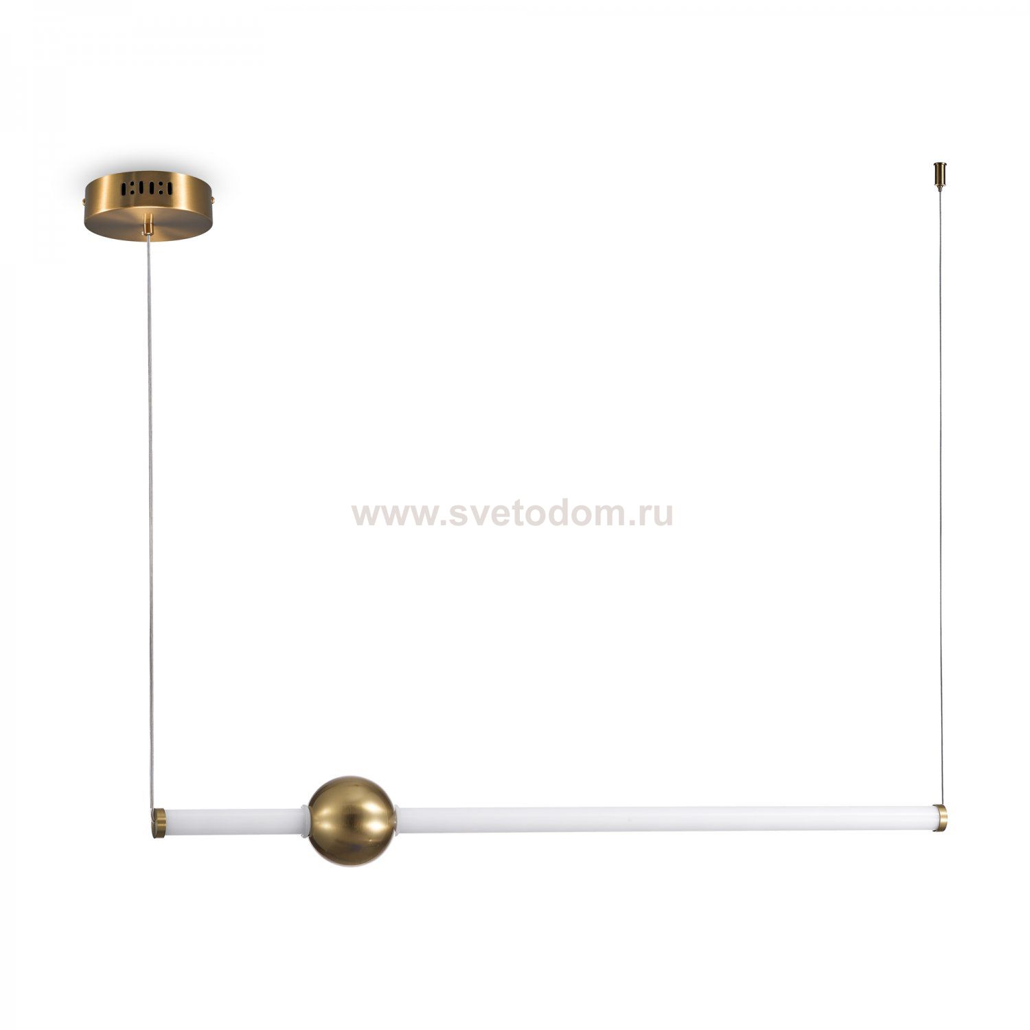 Арматура — тонкая металлическая, цвет — чёрный + латунь. Оригинальная конструкция. Три плафона-цилиндра с затемнённым стеклом закреплены на металлической оси cо встроенным LEDисточником света. Тренд «invisible light». Цветовая температура — 3000 К. Регулируемая высота.