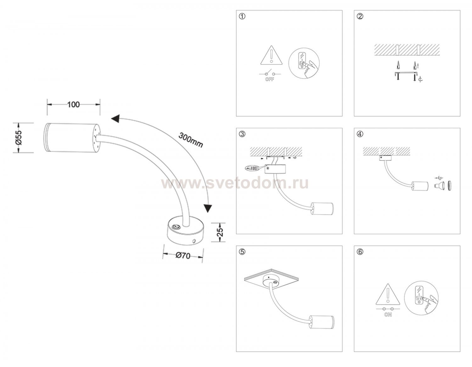 Светильник настенно-потолочный гнущийся с выключателем Артикул производителя
