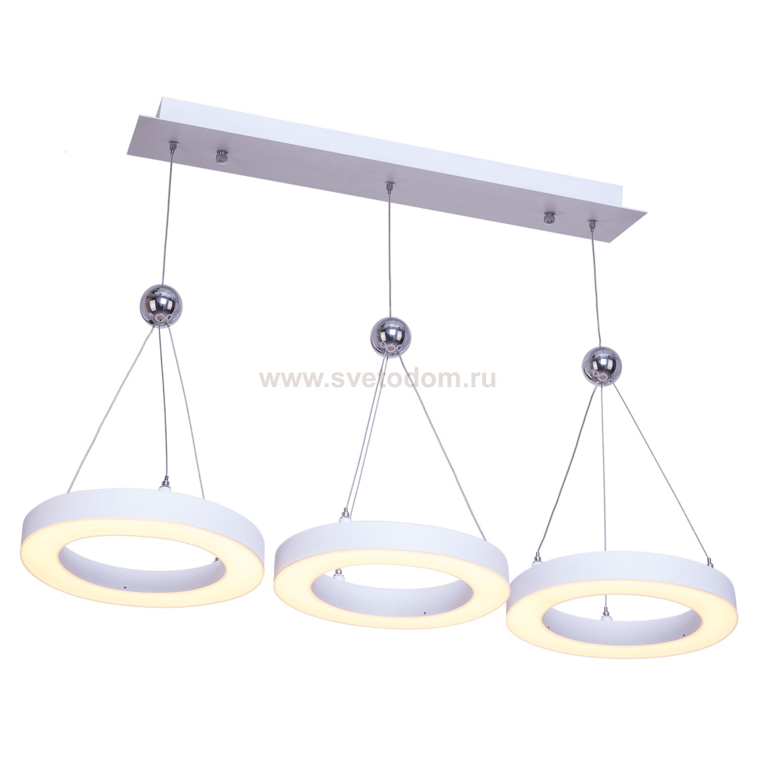Подвесной светодиодный светильник G61011/3WT в современном стиле от бренда Gerhort. Каркас выполнен из материала металл, цвет белый. Плафоны (светорассеиватели) выполнены из материала акрил, цвет белый. Встроенные LED модули на 12 Вт осветят до 13 м?. Свет теплый, мягкий.
