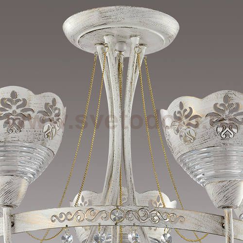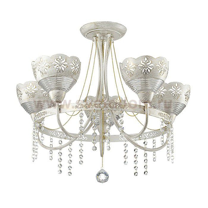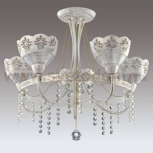 Отличный вариант домашнего освещения Odeon light Люстра потолочная 3141/5C серии ERSILIA оформлена в классическом стиле. Люстра состоит из оригинальных плафонов, выполненных из стекла с тиснением и металлической части с ажурным узором, и арматуры нежного белого с золотой патиной цвета, щедро украшенной подвесками из хрусталя. Данная модель обладает пышной роскошью, не теряя при этом элегантную сдержанность. Цоколь E14. Мощность 5*40W. Нет ламп в комплекте.