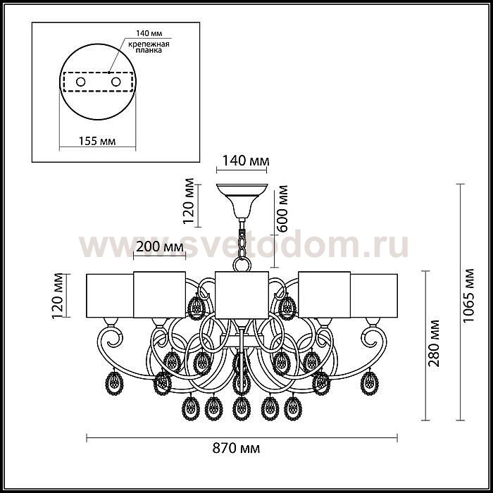 Арматура, декор: металл, хрусталь; плафон: ткань органза Материал плафона