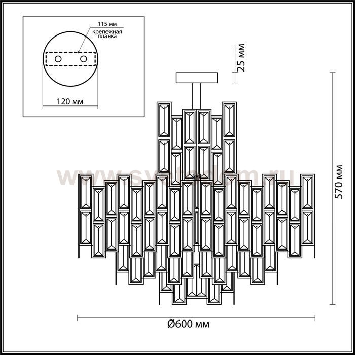Арматура: металл; плафон: металл, хрусталь Материал плафона