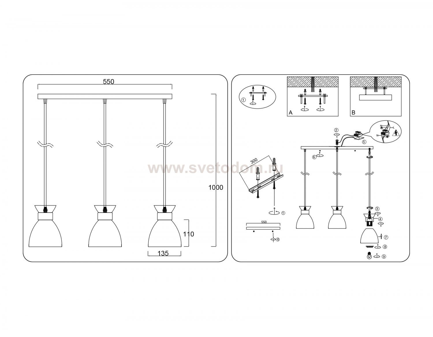 ![]() Люстра на штанге со стеклянными плафонами Ambrella TR303043/8 WH белый E27/8 max 60W 820*820*260 10470 руб.