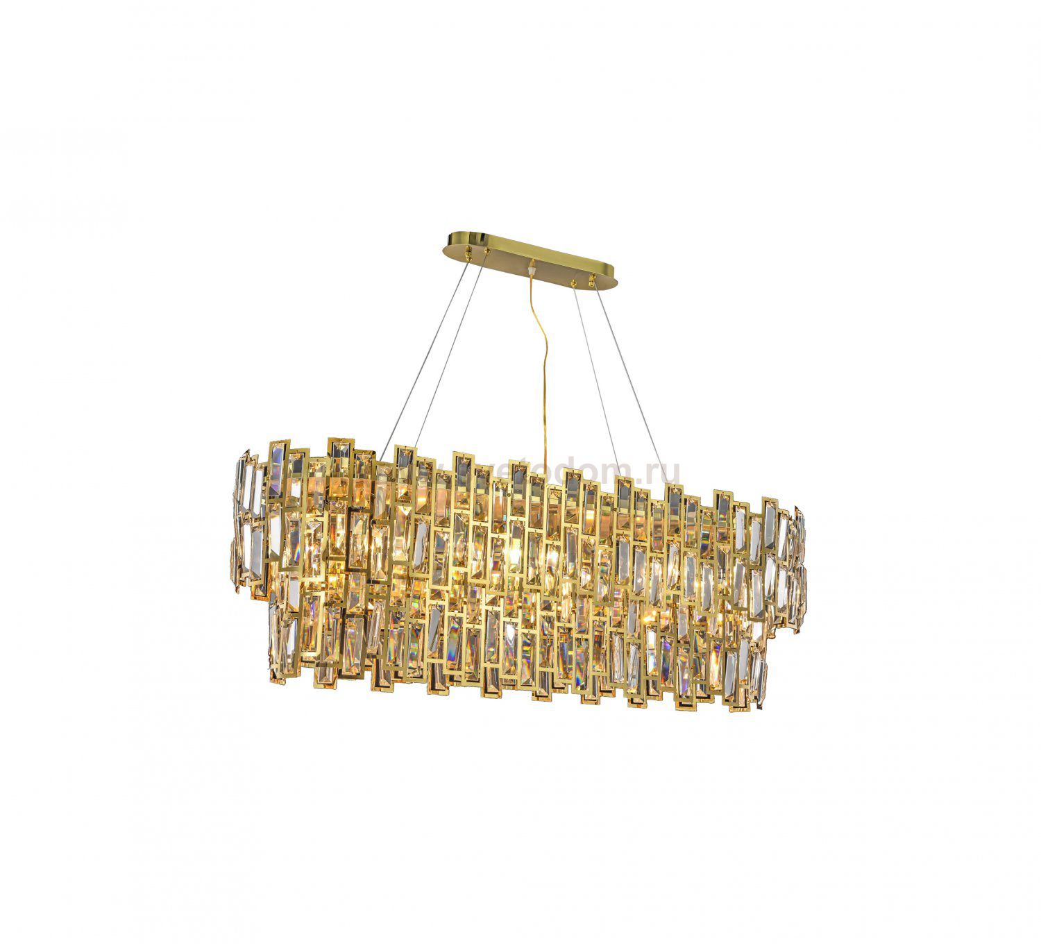 Люстра Princess 800 продолговатой формы со множеством изящных стеклянных пластин с зеркальной поверхностью. Пластины выполнены в прямоугольной форме и заключены в золотое обрамление, способны эффектно рассеивать свет со множеством разноцветных бликов, создающих праздничное настроение.