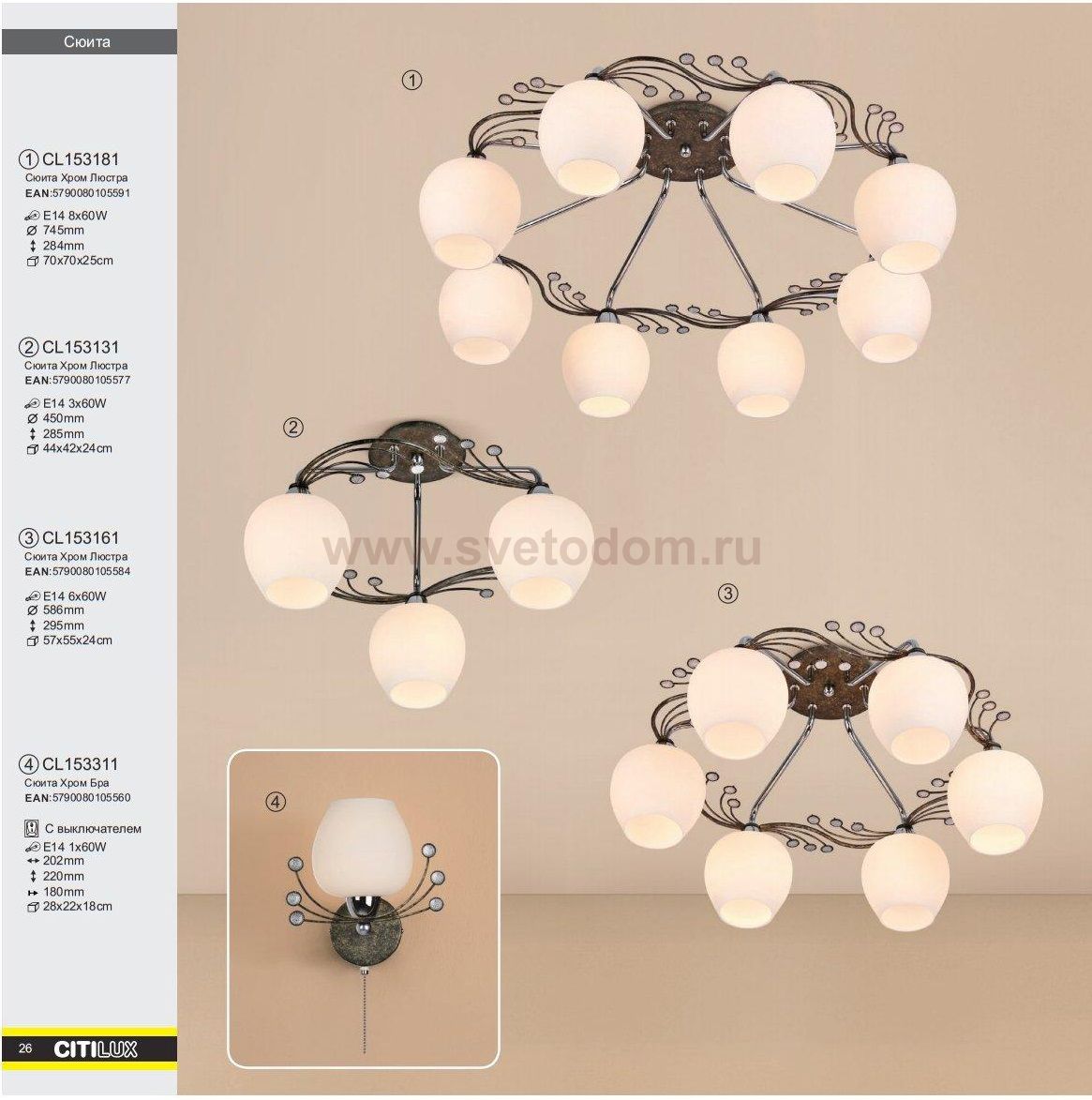 Компания «Светодом» предлагает широкий ассортимент люстр от известных производителей. Представленные в нашем каталоге товары выполнены из современных материалов и обладают отличным качеством. Благодаря широкому ассортименту Вы сможете найти у нас люстру под любой интерьер. Мы предлагаем как классические варианты, так и современные модели, отличающиеся лаконичностью и простотой форм. Стильная люстра Citilux CL153131 станет украшением любого дома. Эта модель от известного производителя не оставит равнодушным ценителей красивых и оригинальных предметов интерьера. Люстра Citilux CL153131 обеспечит равномерное распределение света по всей комнате. При выборе обратите внимание на характеристики, позволяющие приобрести наиболее подходящую модель. Купить понравившуюся люстру по доступной цене Вы можете в интернет-магазине «Светодом».