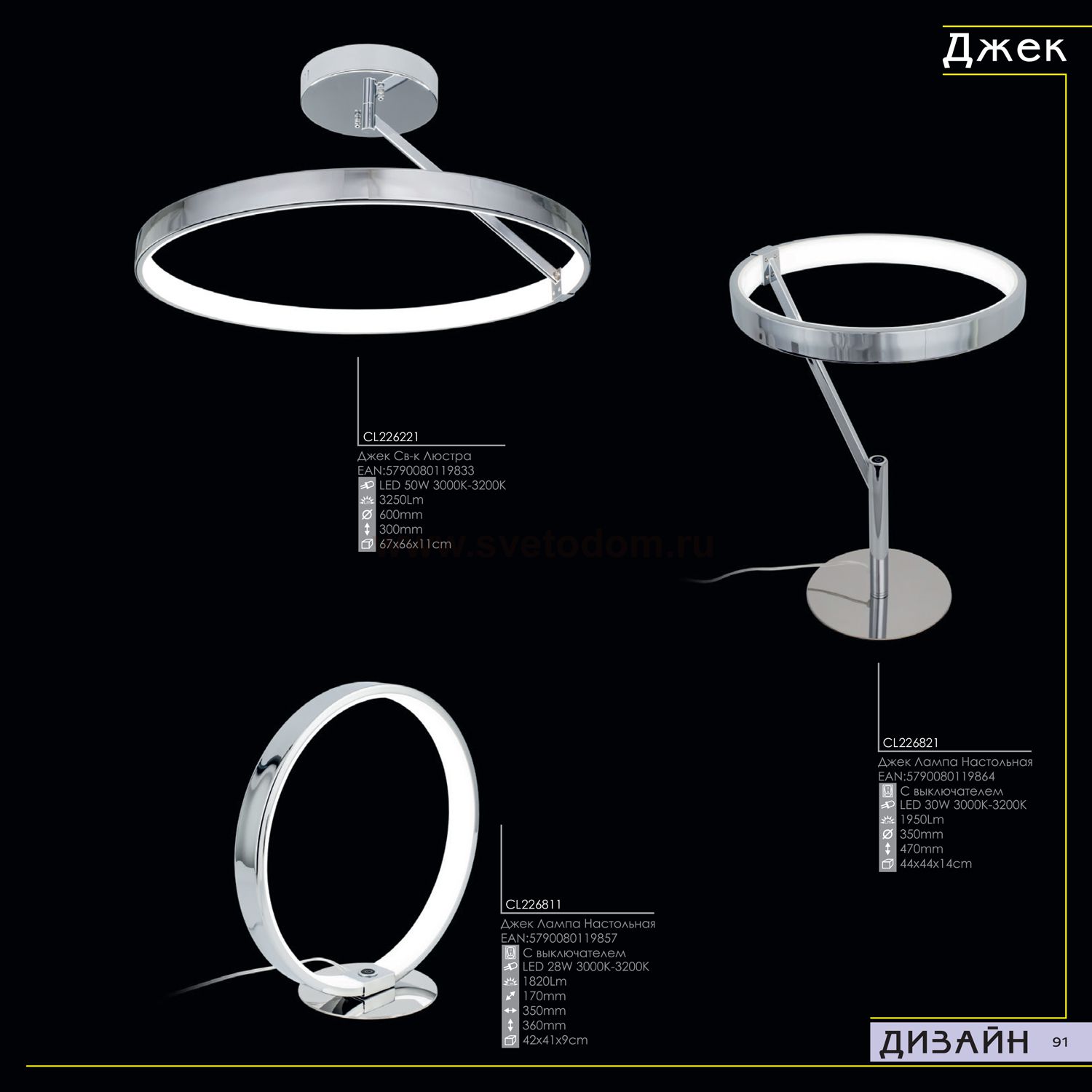 Светодиодный подвес CL226111 из коллекции “Джек” мощностью 30 Вт. Этот изящно изогнутый светильник выполнен в стиле Хай тек с использованием пластика, металла и оптического полимера. Осветительные элементы встроены в конструкцию поэтому подвес не нужда Штрих-код