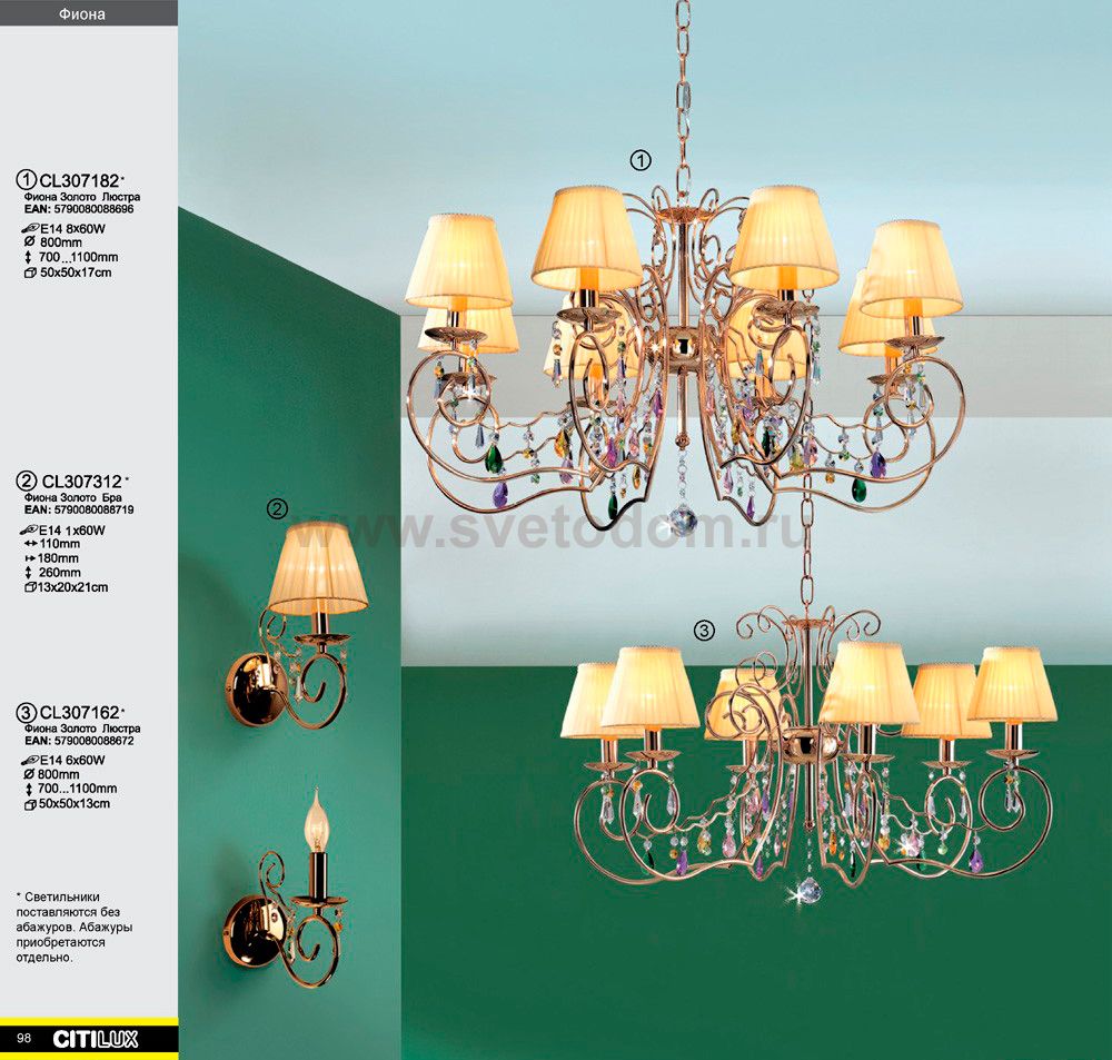 Также рекомендуем посмотреть другие люстры из серии Фиона. Люстра подвесная CL307182 CITILUX - Дания из коллекции Фиона - хорошая возможность улучшить любое помещение или пространство. Хотите купить люстры? Смотрите соответсвующий раздел сайта.