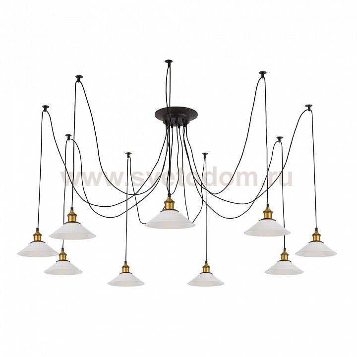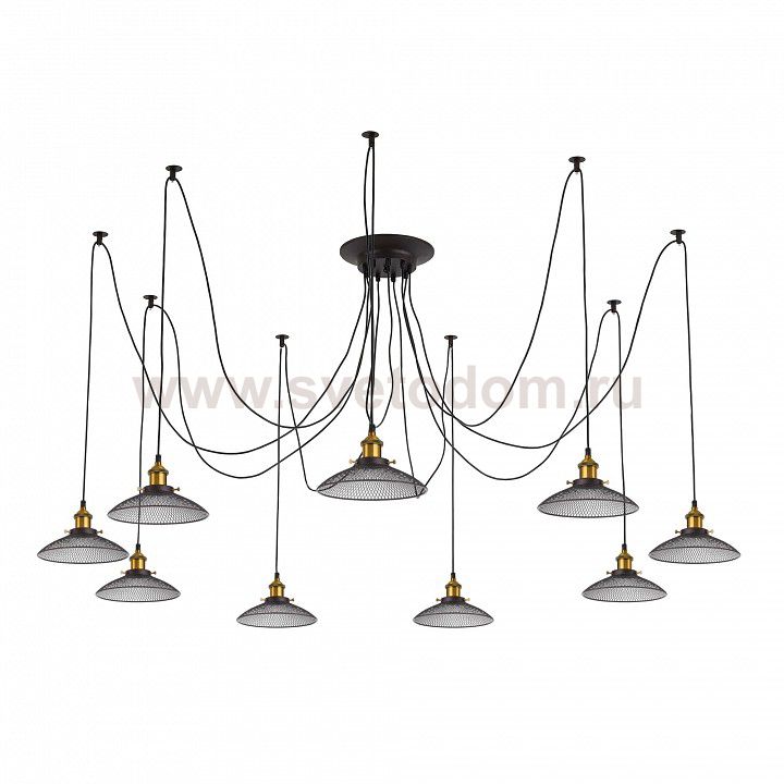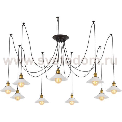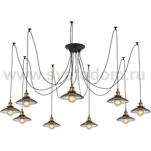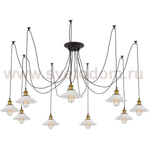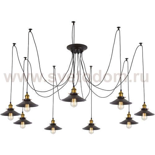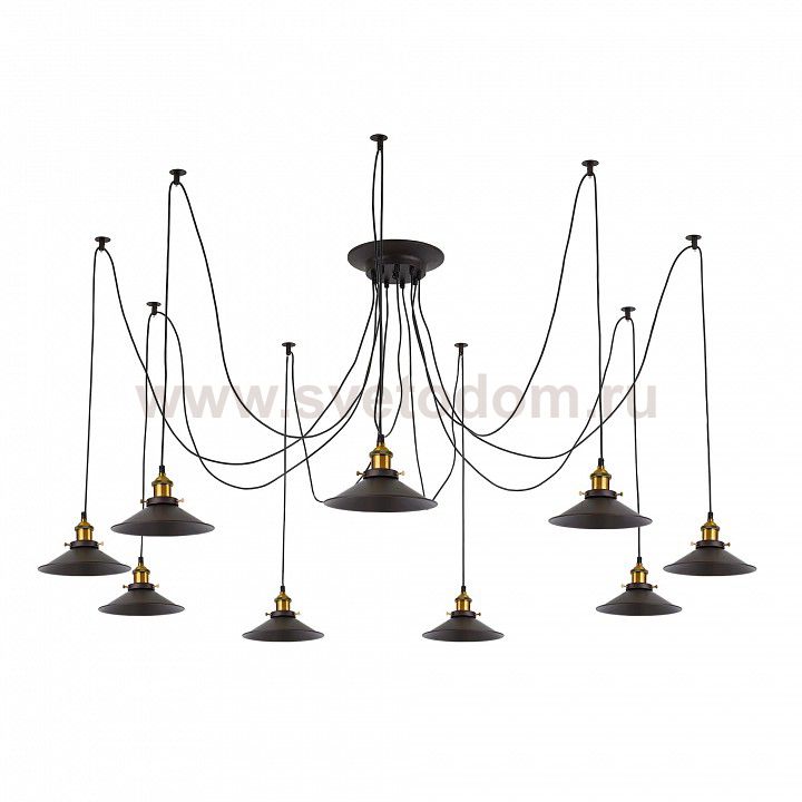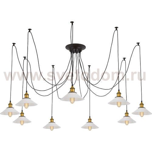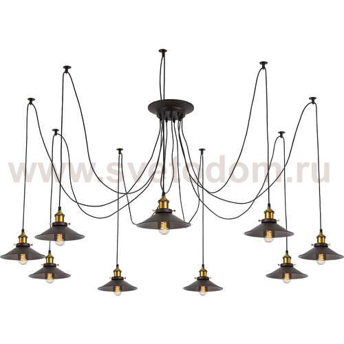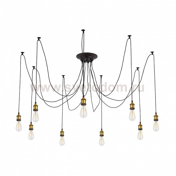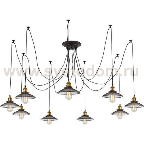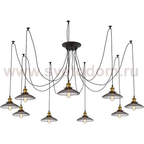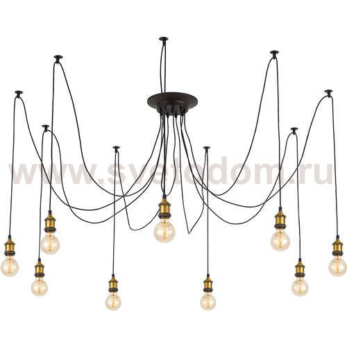 Люстра c многоточечным креплением проводов к потолку, длина провода 215см. Точеный стакан патрона, цвет - старая бронза. Штрих-код