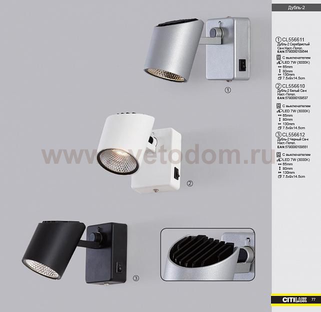 Светильники-споты – это оригинальные изделия с современным дизайном. Они позволяют не ограничивать свою фантазию при выборе освещения для интерьера. Такие модели обеспечивают достаточно качественный свет. Благодаря компактным размерам Вы можете использовать несколько спотов для одного помещения. Интернет-магазин «Светодом» предлагает необычный светильник-спот Citilux CL556611 по привлекательной цене. Эта модель станет отличным дополнением к люстре, выполненной в том же стиле. Перед оформлением заказа изучите характеристики изделия. Купить светильник-спот Citilux CL556611 в нашем онлайн-магазине Вы можете либо с помощью формы на сайте, либо по указанным выше телефонам. Обратите внимание, что у нас склады не только в Москве и Екатеринбурге, но и других городах России.