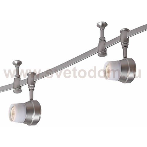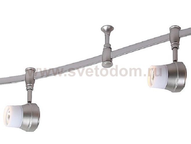 Трековая система 220V на гибкой шине длиной 200см, в комплекте 4 стойки крепления шины и 4 головки, размер головки 11см, лампы GU10, Белое стекло и современный дизайн Комментарий