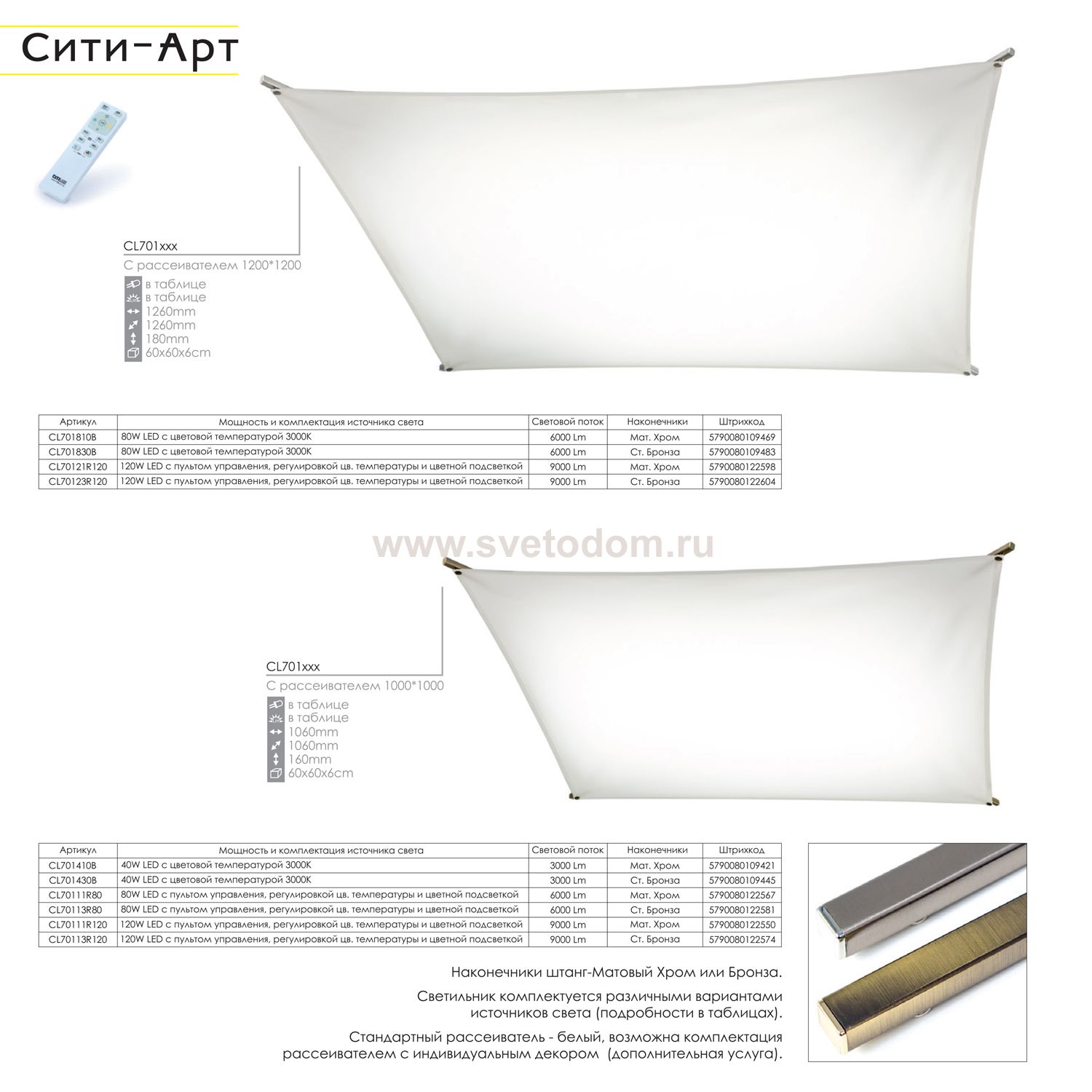 80W LED, Наконечники Старая Бронза, Крепление В, Белый рассеиватель 120*120 см в комплекте Комментарий