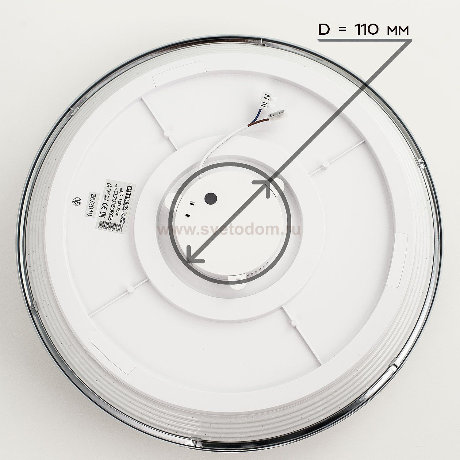 Диаметр 42 см, Высота 7 см, светодиодный светильник с управлением с пульта и выключателя, регулировка яркости и цветовой температуры в широких пределах, функция ночника, красивейший эффект "хрустального" света. Технические особенности