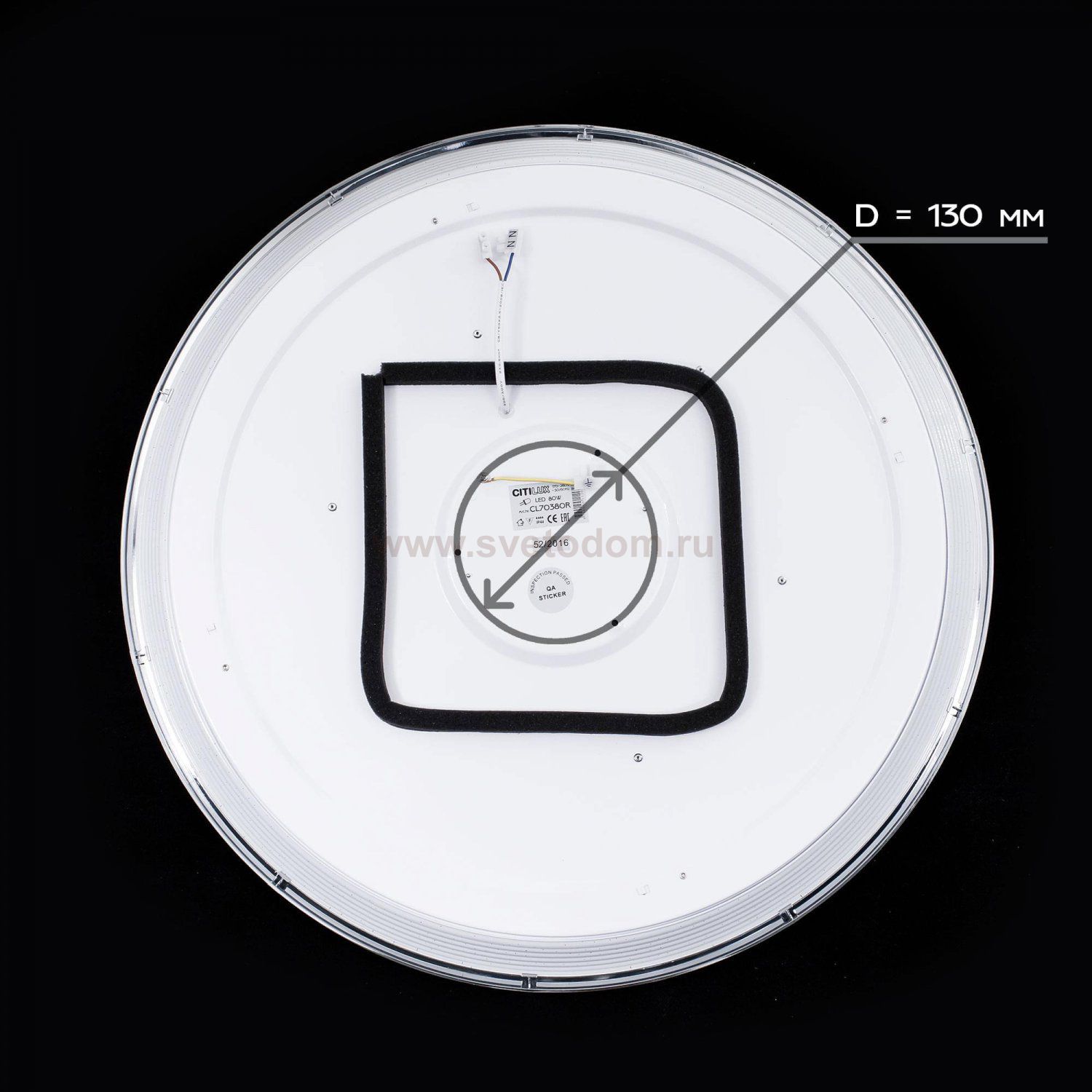 Диаметр 59 см, Высота 8.5 см, светодиодный светильник с управлением с пульта и выключателя, регулировка яркости и цветовой температуры в широких пределах, функция ночника, матовый плафон и кольца. Комментарий