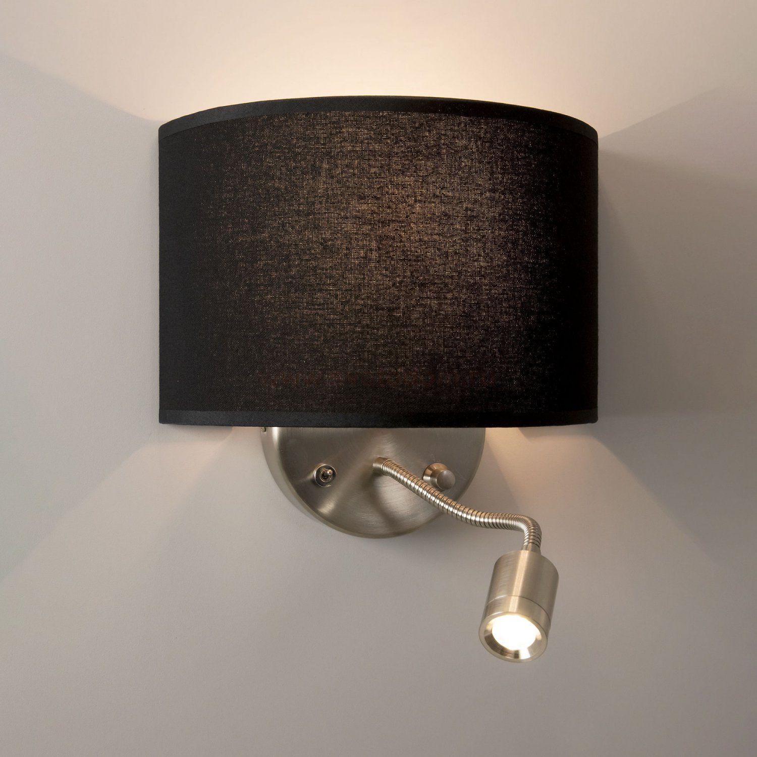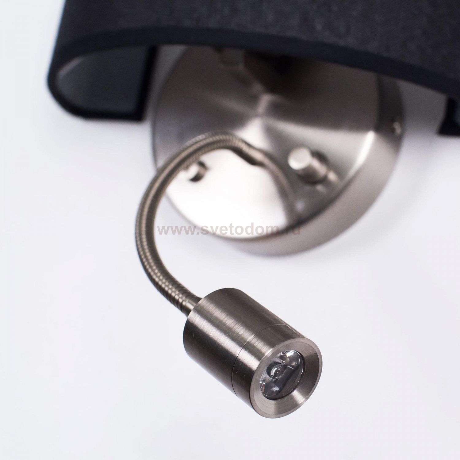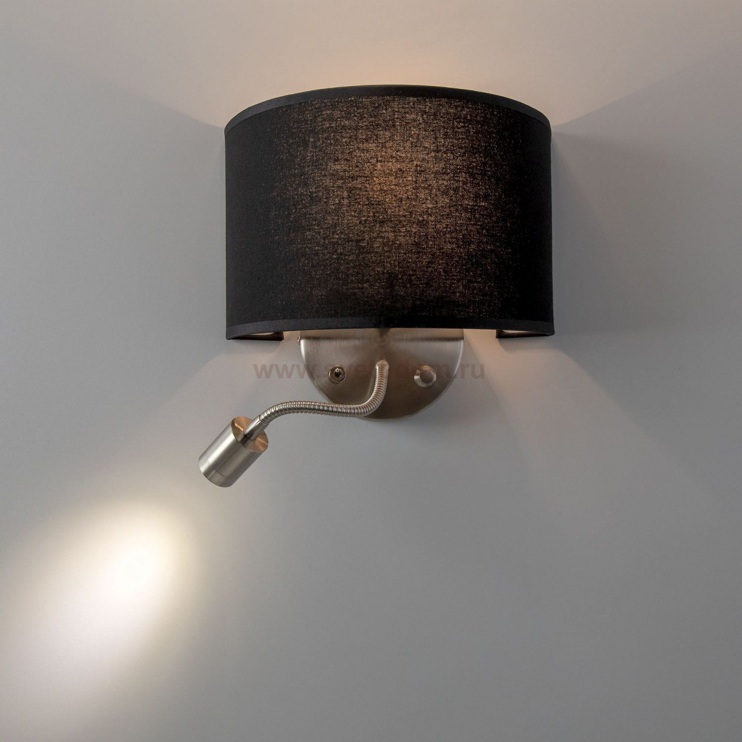 Светильник комбинирует общий и направленный свет с их раздельным включением, Основное назначение - прикроватный светильник, Диммированая лампа Е14*60Вт для общего света, Светодиодная лампа 3Вт теплого света (ЦТ=3000К) с регулировкой положения - для чтения