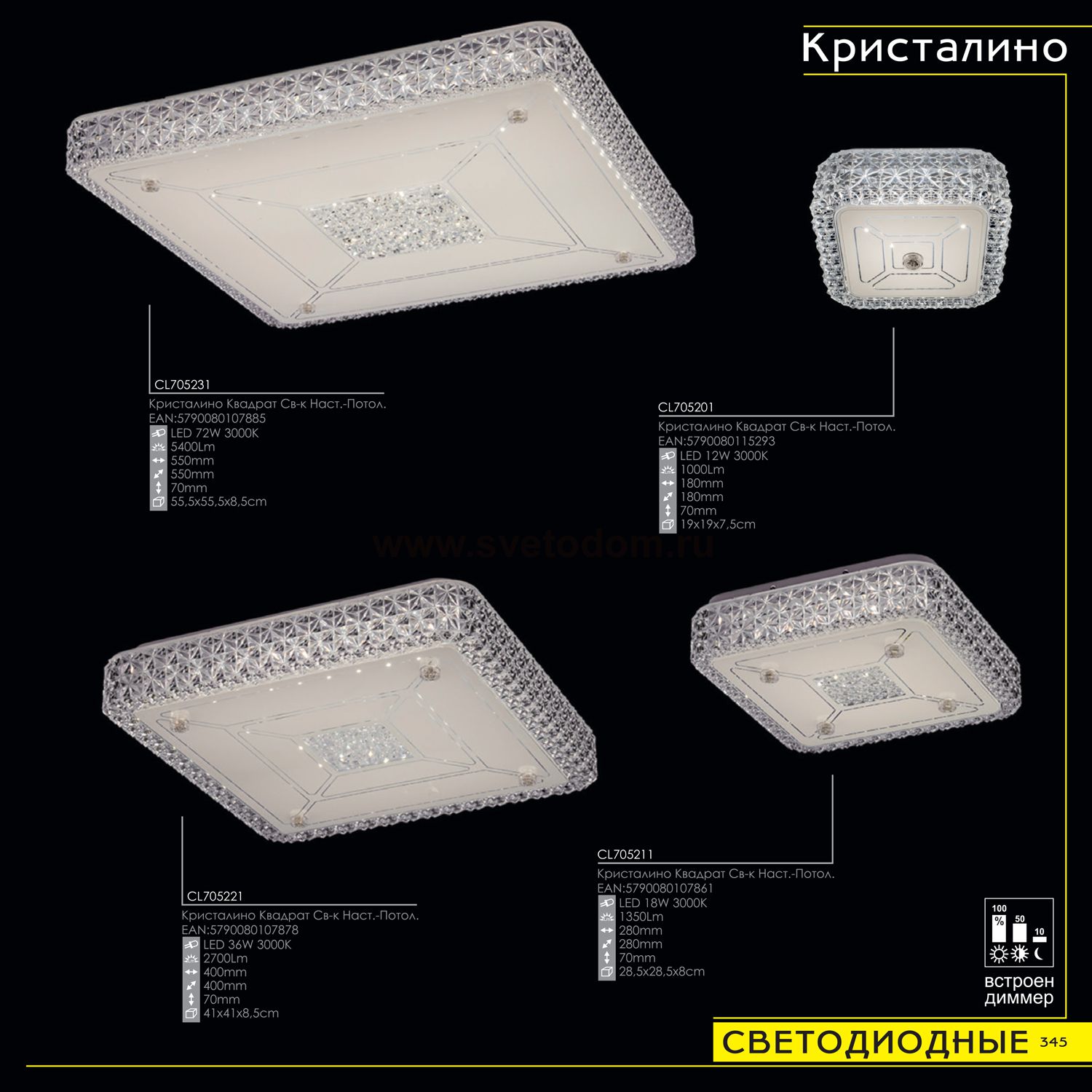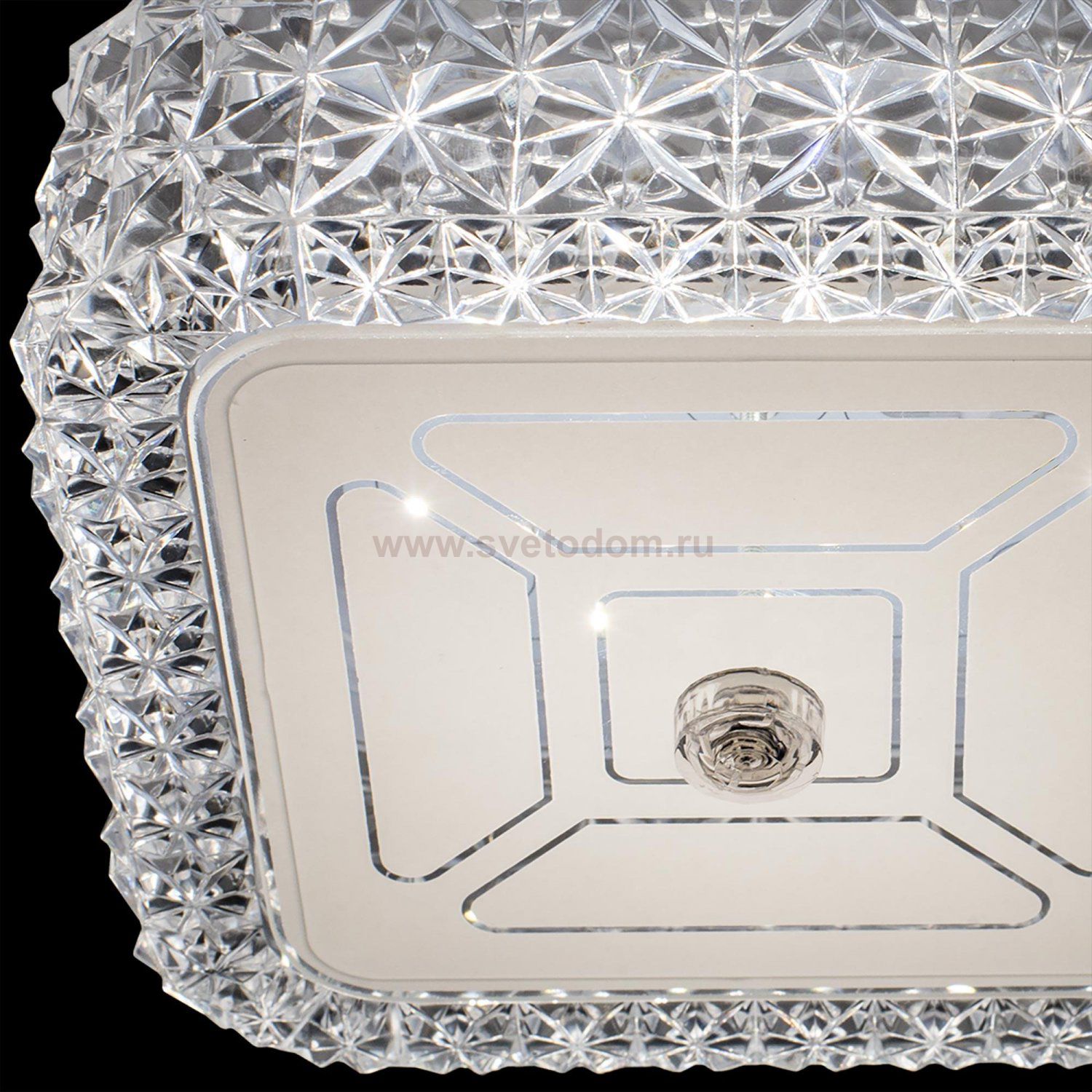 Габариты 18х18см, , Высота 7 см, Светодиодный светильник с хрустальным эффектом, Уровень мощности 100-50-10% управляется выключателем Технические особенности