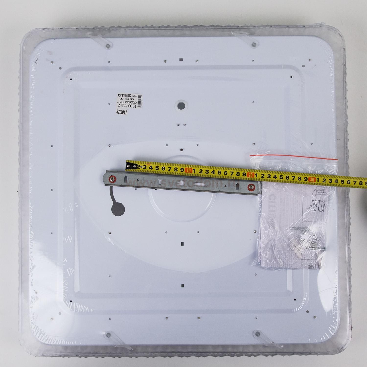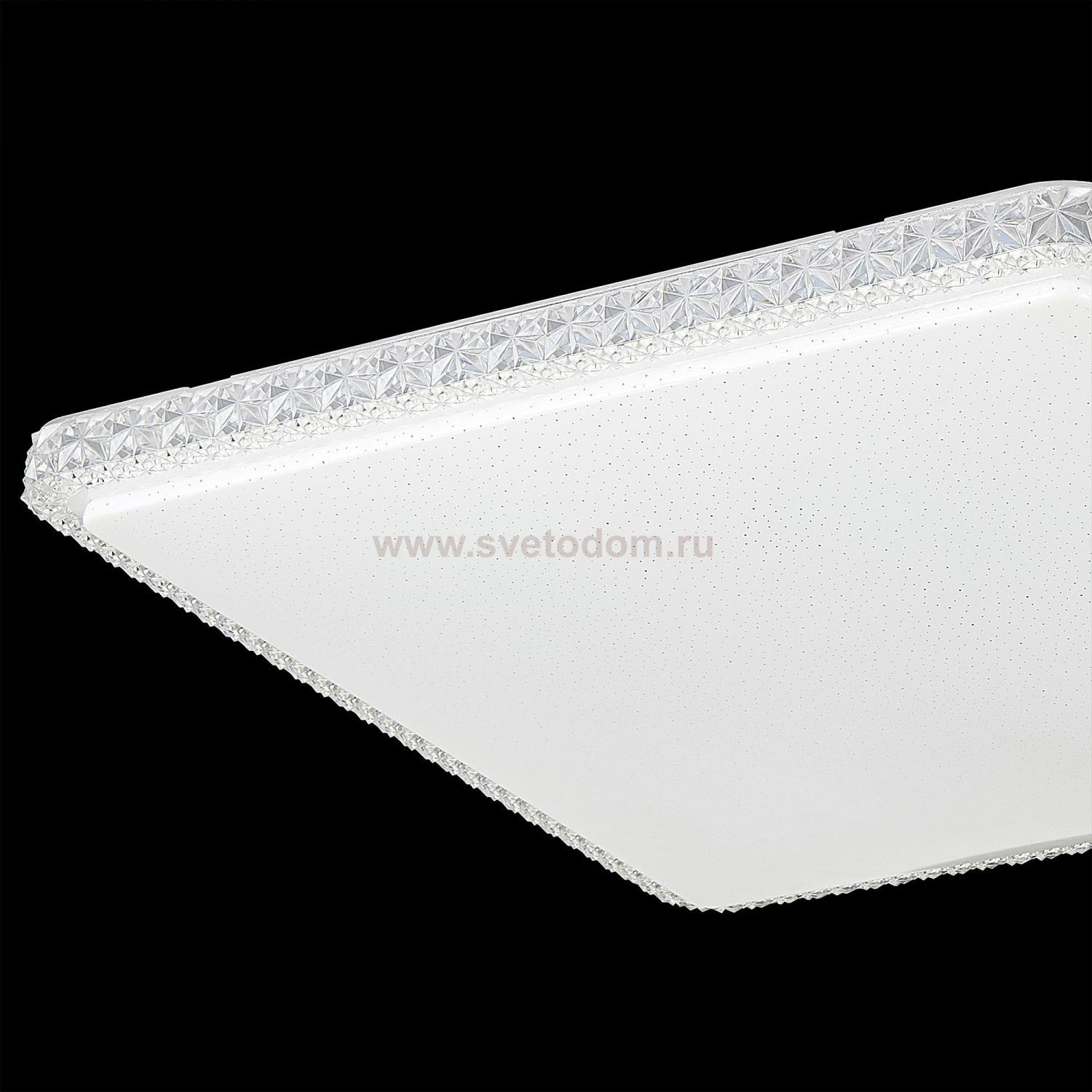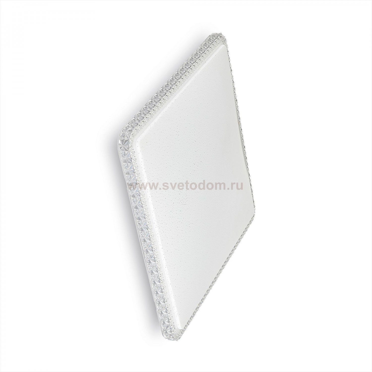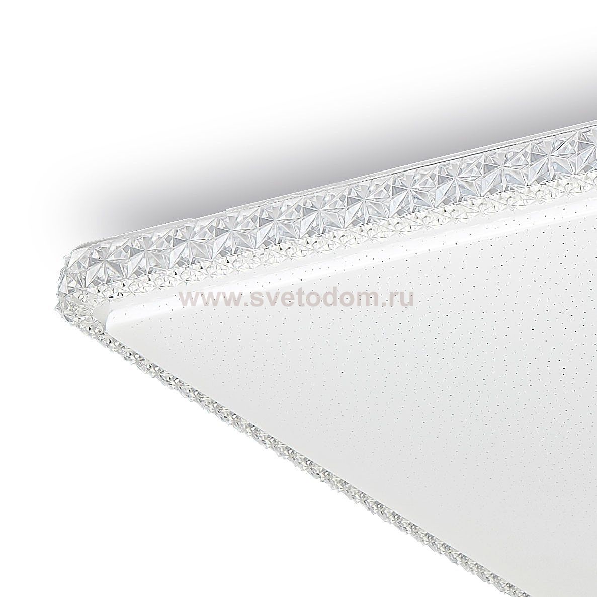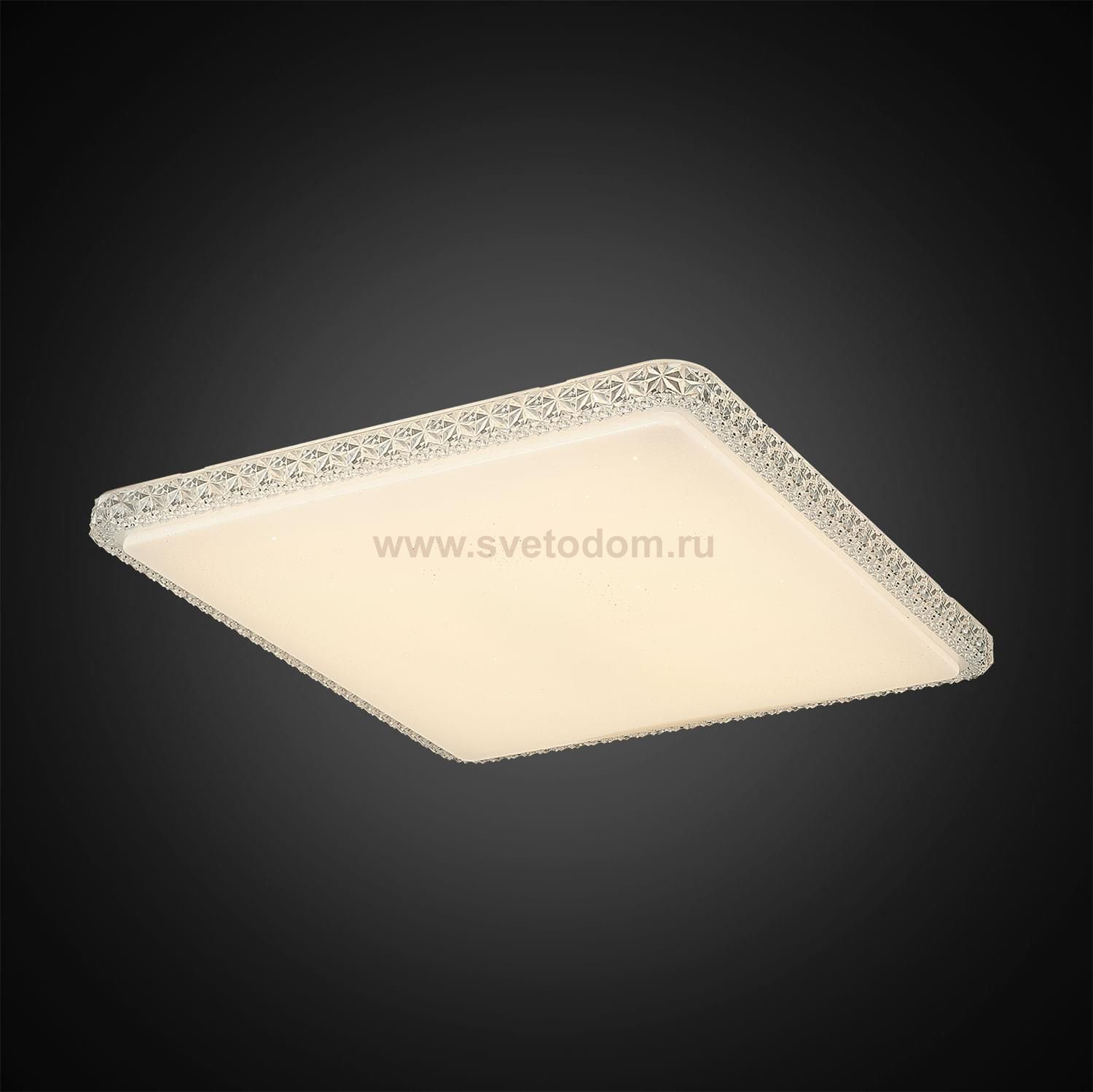 Габариты 55*55см, Высота 8см, Светодиодный светильник мощностью 72Вт с хрустальным эффектом на ободе и эффектом "старлайт" на матовом рассеивателе, Уровни мощности 100-50-5% управляются обычным выключателем Комментарий