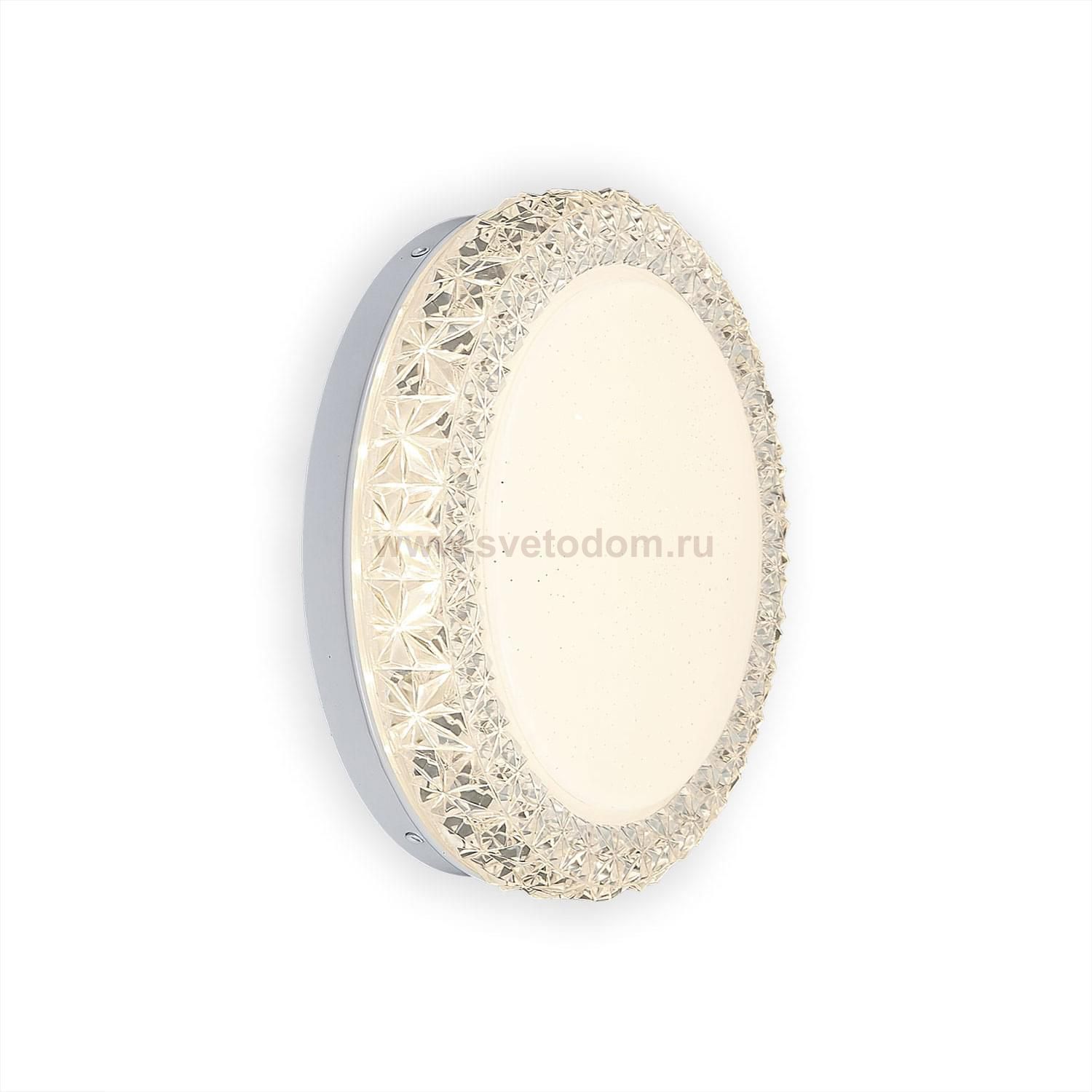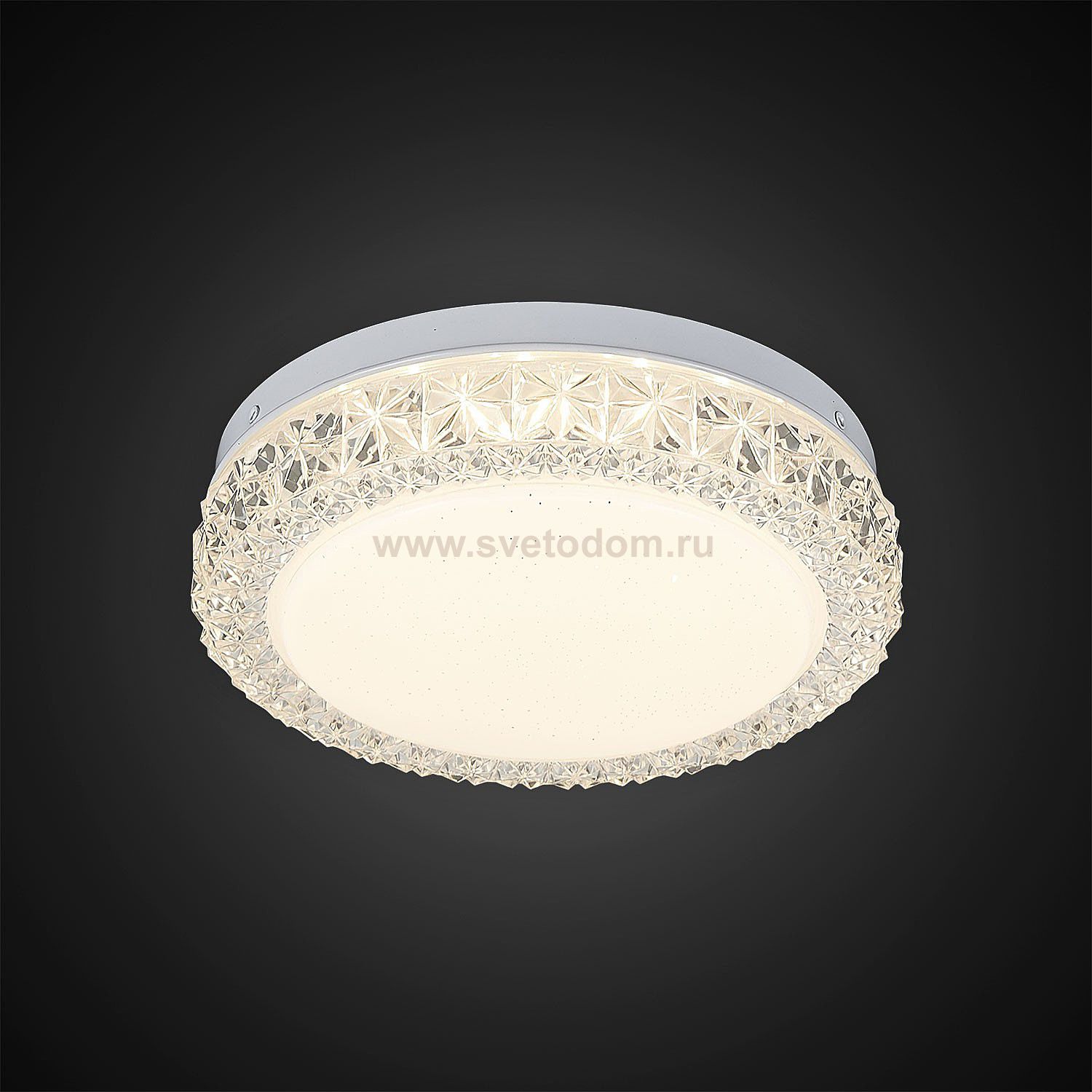 Диаметр 20см, Высота 6,5см, Светодиодный светильник мощностью 12Вт с хрустальным эффектом на ободе и эффектом "старлайт" на матовом рассеивателе, Уровни мощности 100-50-5% управляются обычным выключателем Комментарий