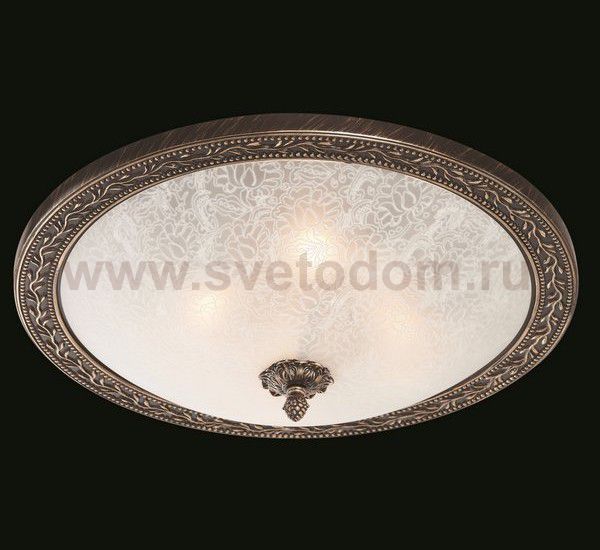ободок светильника цвета бронзы декорирован рисунком в форме веточек цвета старинного золота, на плафоне рисунок выполненный технологией пескоструйка Цвет плафона / абажура