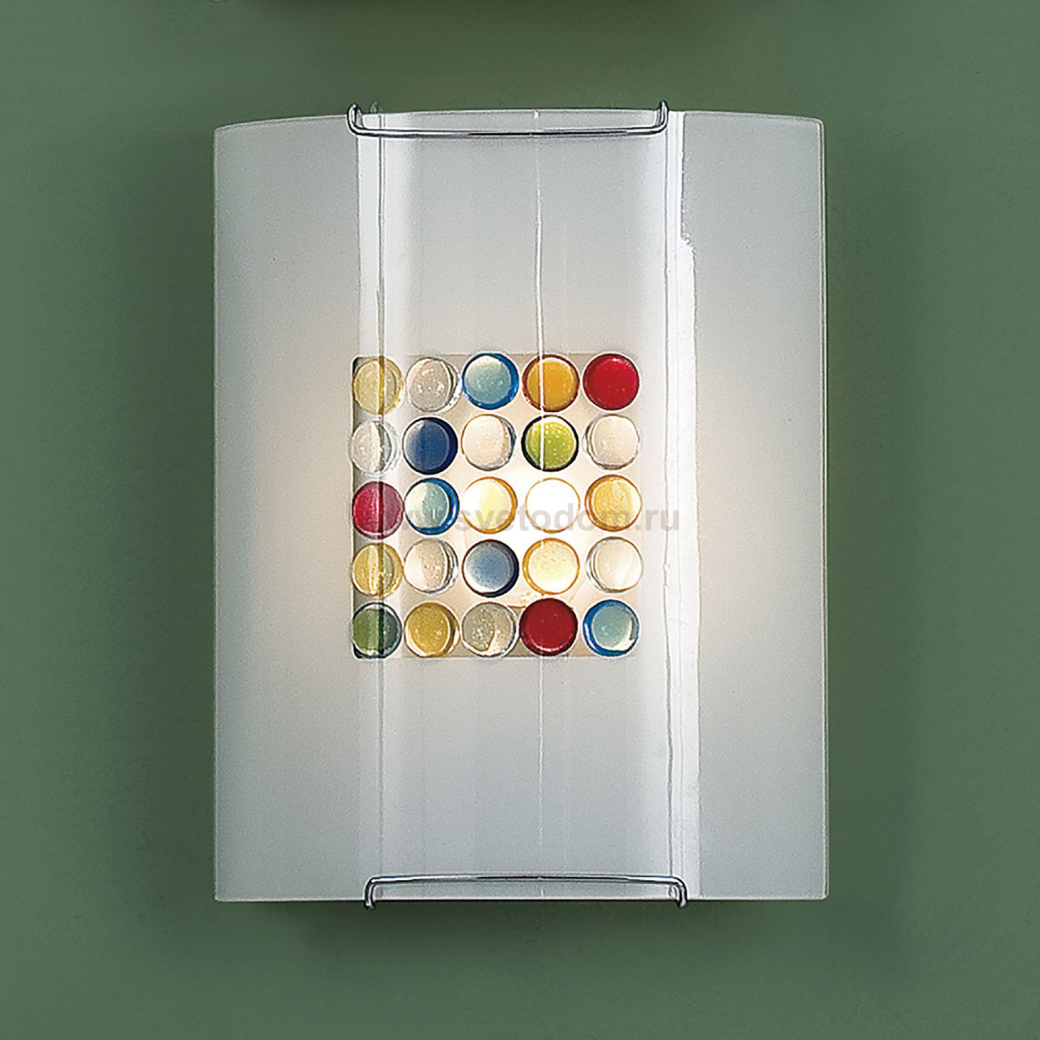 Стеклянный рассеиватель, Кофейные и Желтые элементы приклеены изнутри, Высота 25см, Ширина 20см, Глубина 9см. Расстояние от стены, мм