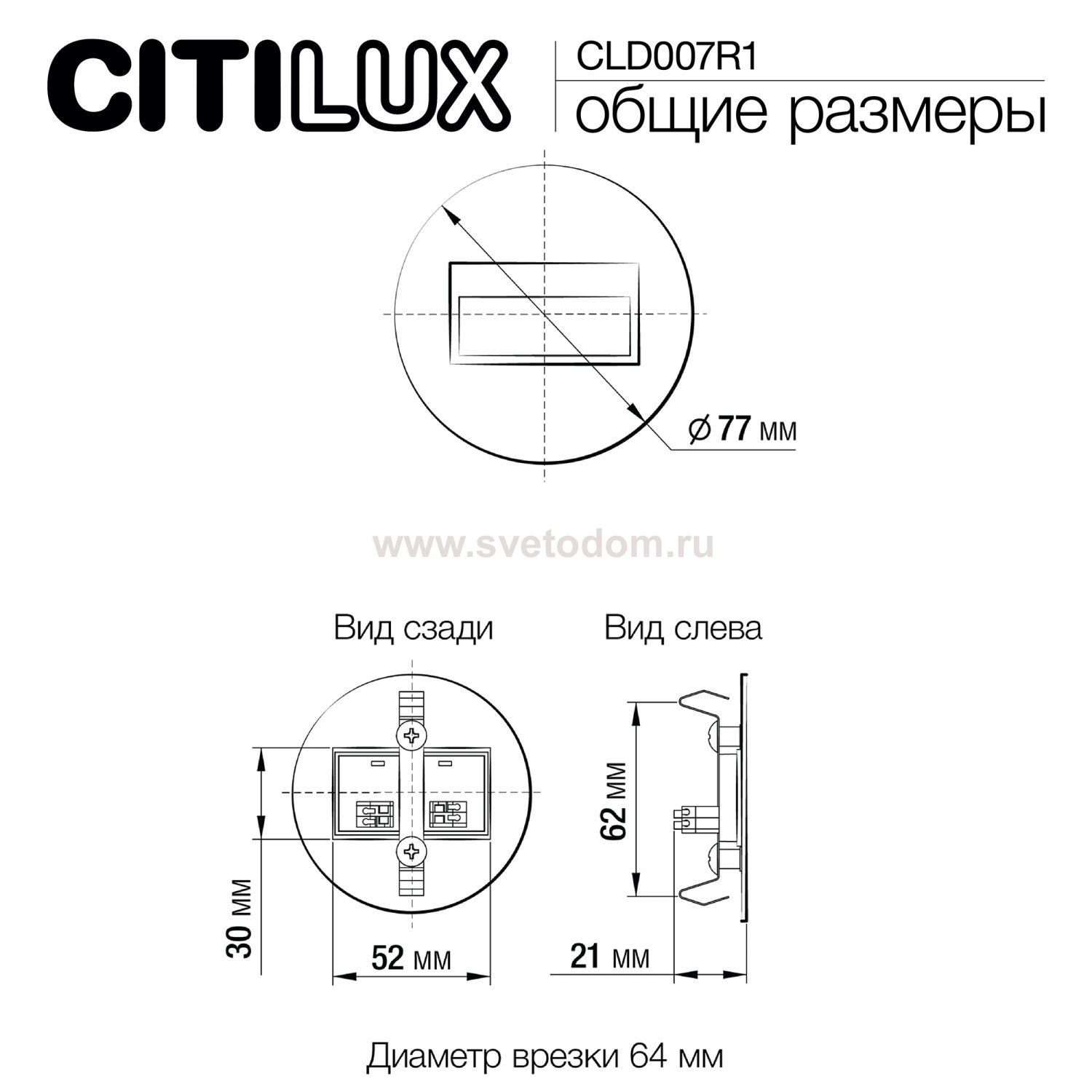 Данный размер указывает какое отверстие необходимо сделать для правильного монтажа. Зачастую светильники выбирают после ремонта и сделанных монтажных отверстий, тогда подбор осуществляется строго в размер +/- 2-5мм.