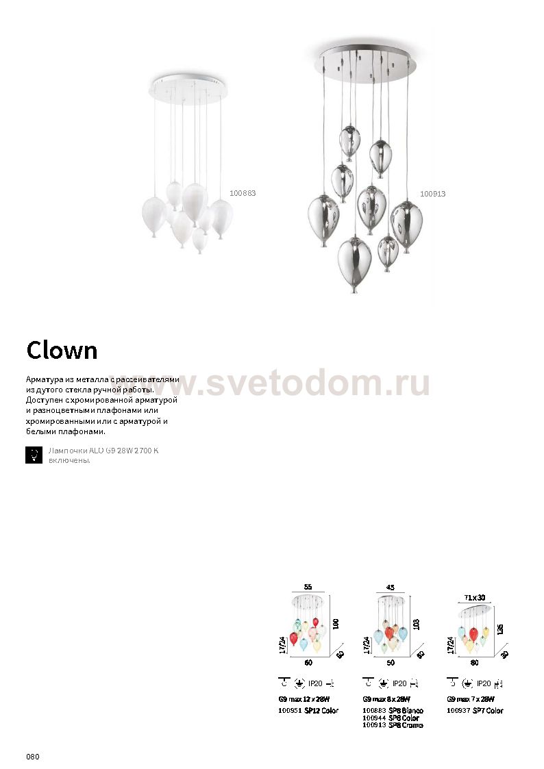 80 Отзывы Ideal Lux CLOWN SP8 BIANCOПока нет отзывов об этом товаре, напишите и он обязательно появится после модерации! Оставить свой отзывПохожие товары Другие товары магазина Фото