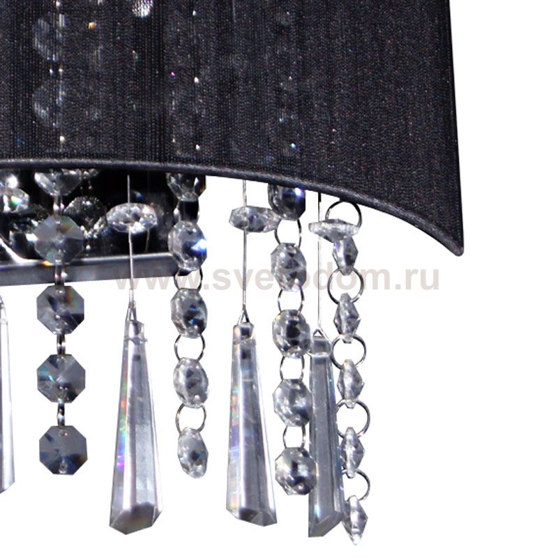 Абажур выполнен из темной материи натянутой на хромированный каркас, что придавало бы ей воздержанный даже аскетичный вид, если бы не сверкающие подвески из хрусталя. Рассыпаясь мириадами бликов они привнесут тайну и загадку в ваш интерьер.