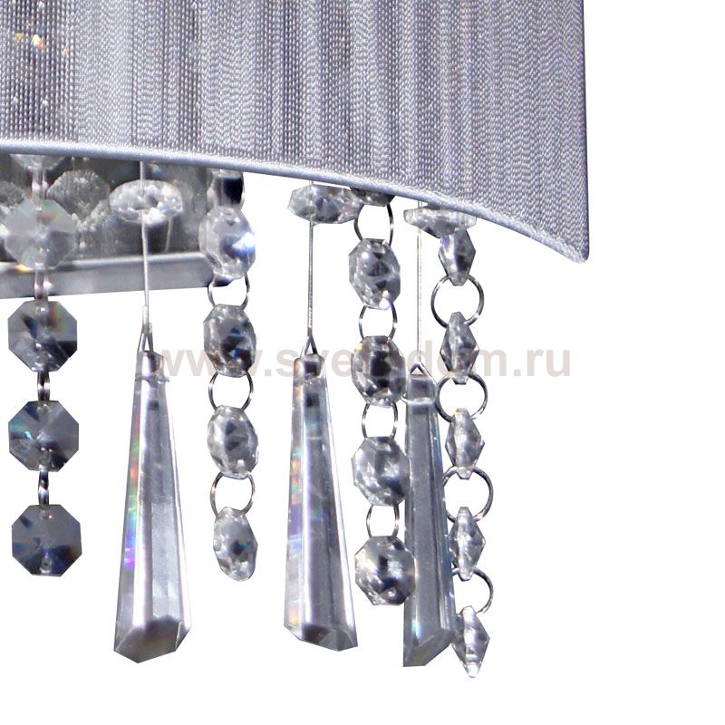 Белый прозрачный абажур сделает вашу комнату еще светлее и наряднее придав ей праздничное и немножко сказочное настроение. Каркас из хромированного метала придает чувство надежности и легко впишется в интерьер. Множество подвесок выполненных из хрусталя оживут мириадами звездных огней и всегда будут радовать вас своей игрой света.
