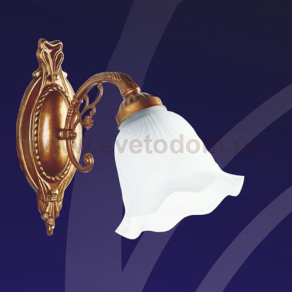 Великолепный настенный светильник итальянского производства выполненный в античном стиле. Изящный белый плафон из матового стекла сделан в форме распустившегося бутона и дает мягкий слегка рассеянный свет. Изящный изгиб рожка крепления украшен веточкой декоративного элемента, что прекрасно гармонирует как с цветочным мотивом плафона, так и с изяществом настенного крепления. Вся арматура окрашена в цвет меди, что придает светильнику еще больше изящества и красоты.