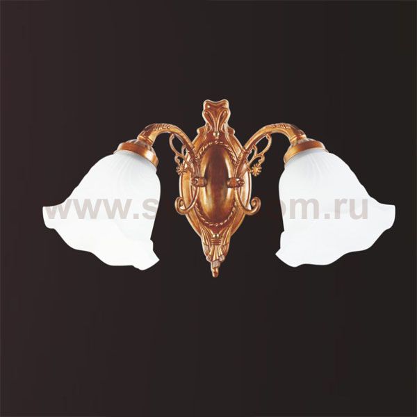 Отличный настенный светильник выполненный итальянским специалистами в античном стиле. Плафоны изготовлены из матового стекла белого цвета в виде двух распустившихся бутонов. Мягкие и плавные изгибы рожков великолепно гармонируют с центральной частью крепежа, а декоративные элементы их украшающие подчеркивают цветочный мотив своим внешним сходством с маленькой веточкой. Сияющее медное покрытие арматуры привнесет в интерьер еще больше тепла и солнца и украсит собой любое дизайнерское решение.