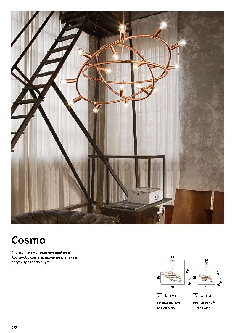 100 Отзывы Люстра Ideal lux COSMO SP15 (133058)Пока нет отзывов об этом товаре, напишите и он обязательно появится после модерации! Оставить свой отзывПохожие товары Другие товары магазина Фото