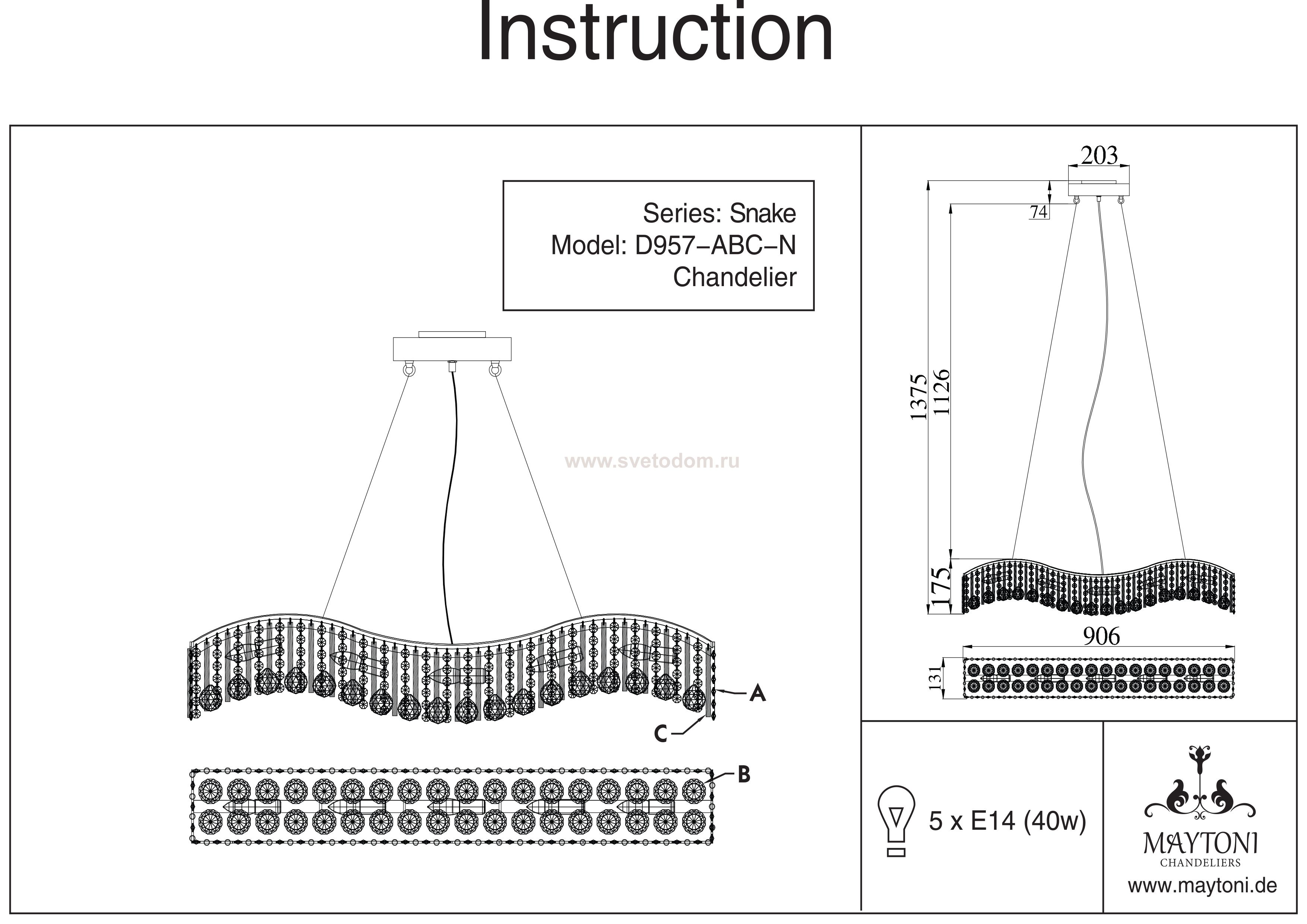 100 Отзывы Люстра Maytoni D957-ABC-N SnakeПока нет отзывов об этом товаре, напишите и он обязательно появится после модерации! Оставить свой отзывПохожие товары Другие товары магазина Фото