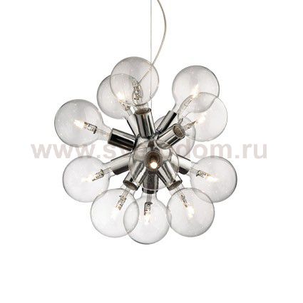 Подвесной светильник от известной итальянской фабрики Ideal lux из каталога Moderno в современном стиле под артикулом DEA SP12 (74771) серии DEA имеет ряд отличительных характеристик: Шарообразная арматура и покрывающие патроны колбы из хромированного металла. Стальной трос регулируется по длине с помощью автоматического устройства.