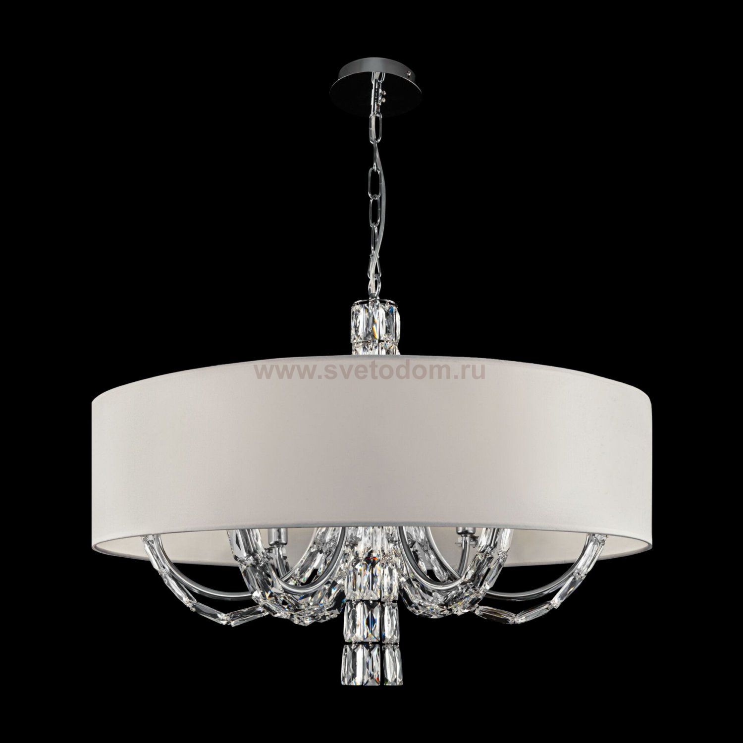 Арматура из металла, цвет – хром. Абажуры из текстиля, нанесенного на ПВХ. Цвет – белый. Декор – массивные кристаллы сложной огранки. Высота подвесных моделей регулируется.
