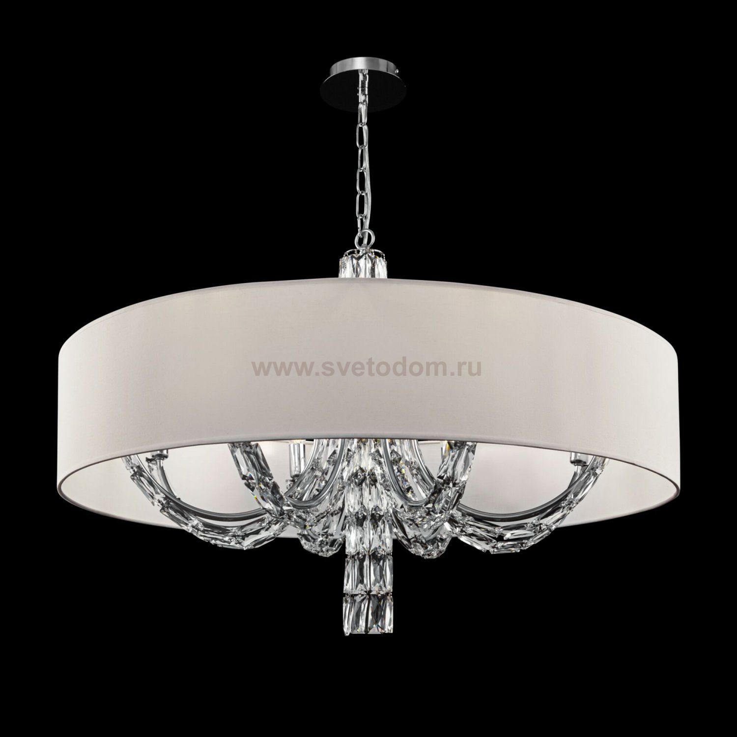 Арматура из металла, цвет – хром. Абажуры из текстиля, нанесенного на ПВХ. Цвет – белый. Декор – массивные кристаллы сложной огранки. Высота подвесных моделей регулируется.
