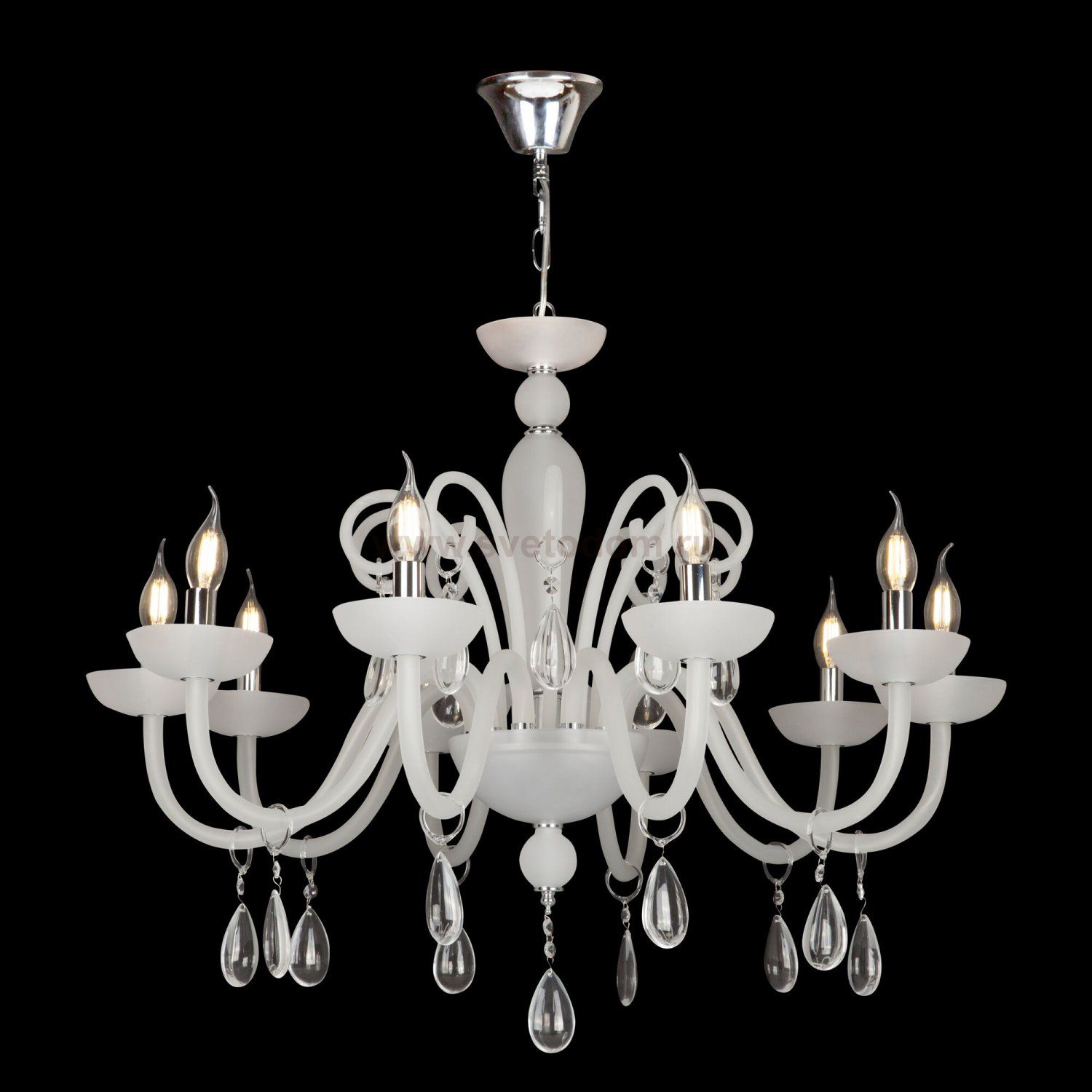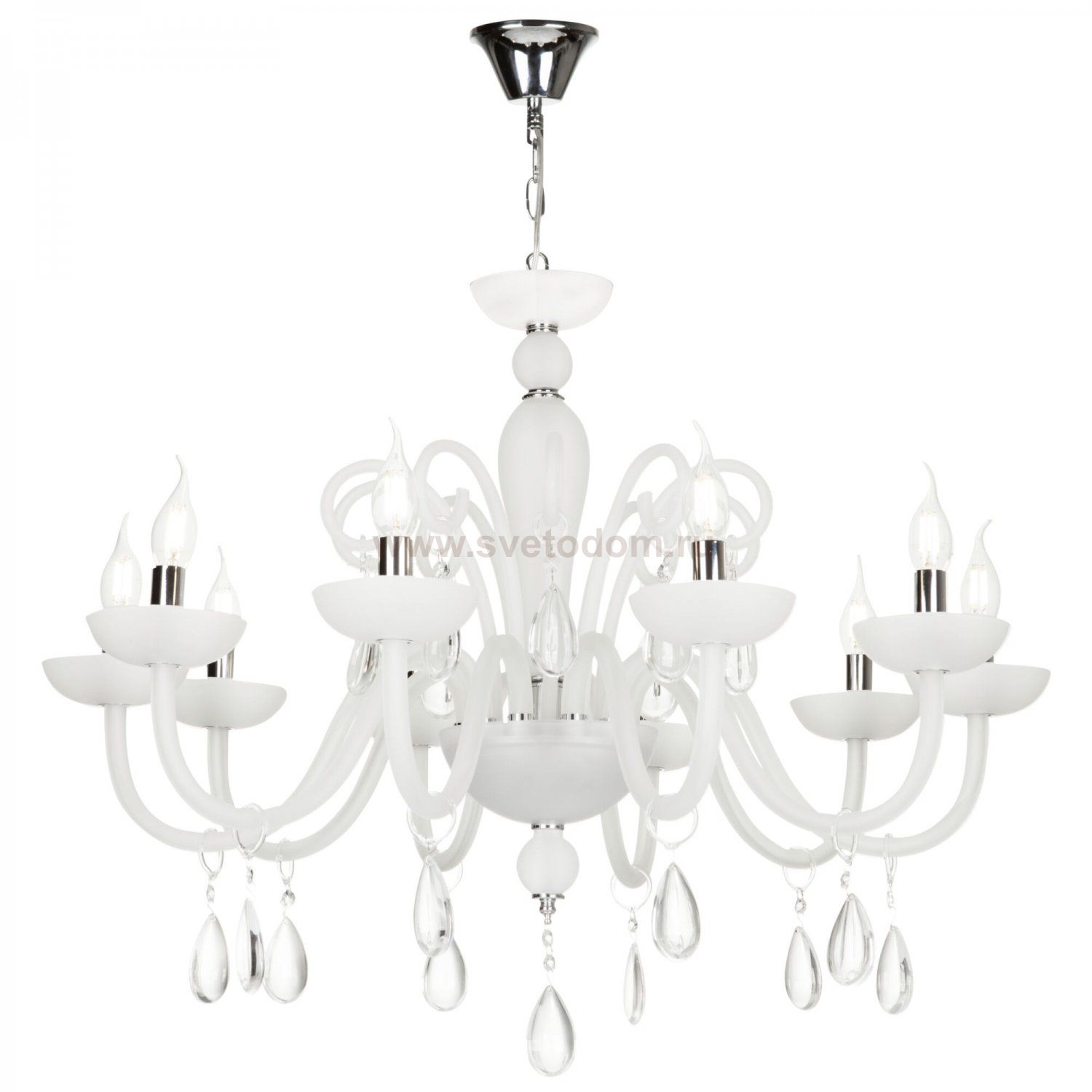 Особенности модели DIA011PL-10W: Оригинальный внешний вид светильников серии обусловлен матовыми стеклянными деталями, которые составляют большую часть конструкции. Светильники украшены подвесками в форме капель. Они закреплены на рожках с помощью стеклянных колец. Высоту люстр возможно изменить, регулируя высоту цепи.