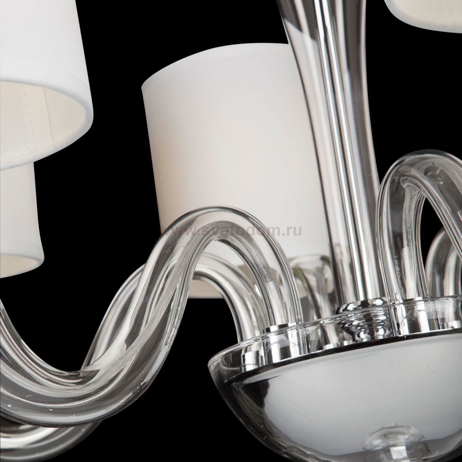 Арматура из металла и прозрачного стекла. Абажур из ПВХ покрыт белой тканью. Срок службы