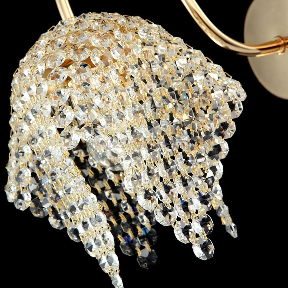 Изысканный осветительный прибор, отвечающий названию, данному ему немецким производителю Maytoni, спроектировавшим свое бра в модном стиле модерн, украсит интерьер и расскажет о Вашем изысканном вкусе. Бра Maytoni Diamant Crystal DIA082-WL-01-G выполнено с использованием золоченого металла и хрусталя, составляющих беспроигрышное сочетание. Фото поможет Вам оценить красоту изделия от Майтони и сопоставить внешность со стоимостью, представленной на странице. Круглое основание удерживает тонкую изогнутую ножку, несущую тонкую «паутинку», выполненную из прозрачных страз. Прибор рассчитан на использование лампы с цоколем E27, купить которую необходимо по отдельной цене. |